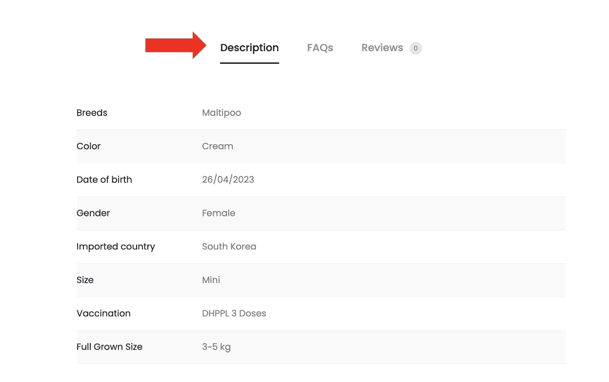As for this example, we will choose to buy a Maltipoo puppy, so we will click to select the ‘Maltipoo’ menu.