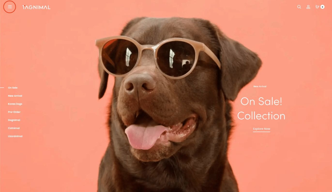 When you click on the three tabs, then a variety of menus will appear. For this scenario, we are now looking for a dog so we will click on the “Shop” menu.
