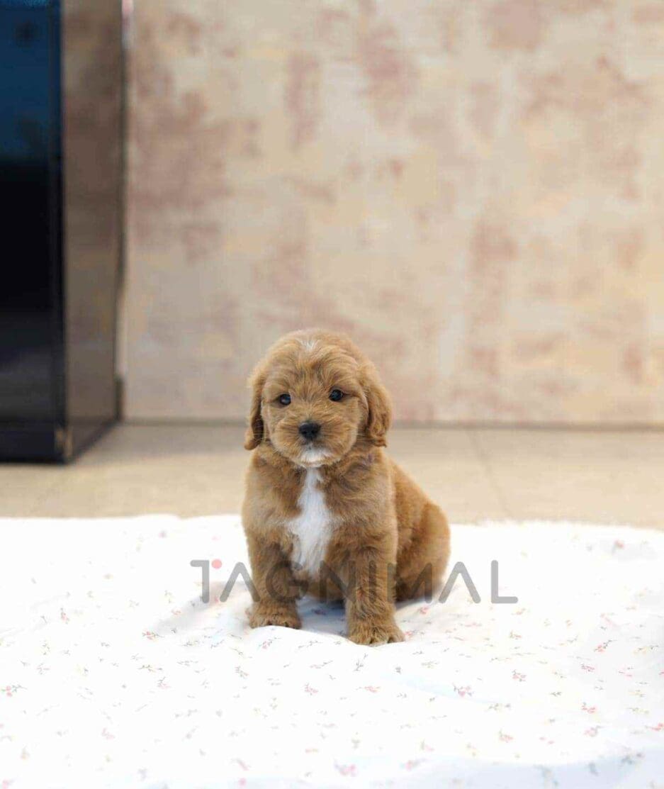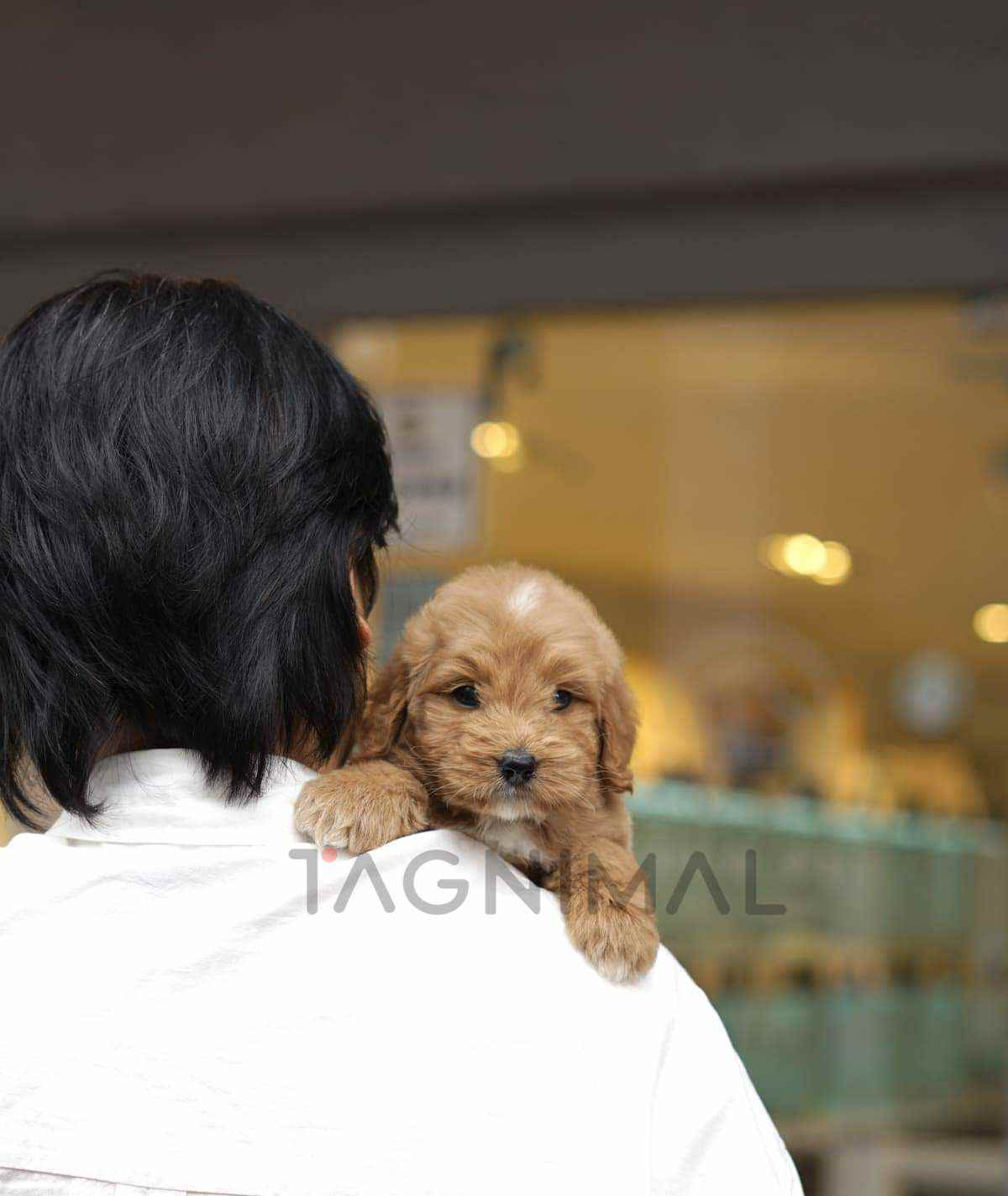 The little Korean Goldendoodle baby boy with the hybrid breed (Golden + Poodle), adorable face, Beautiful curly brown fur, and the perfect size for cuddling is now ready for a new loving home ❤️
