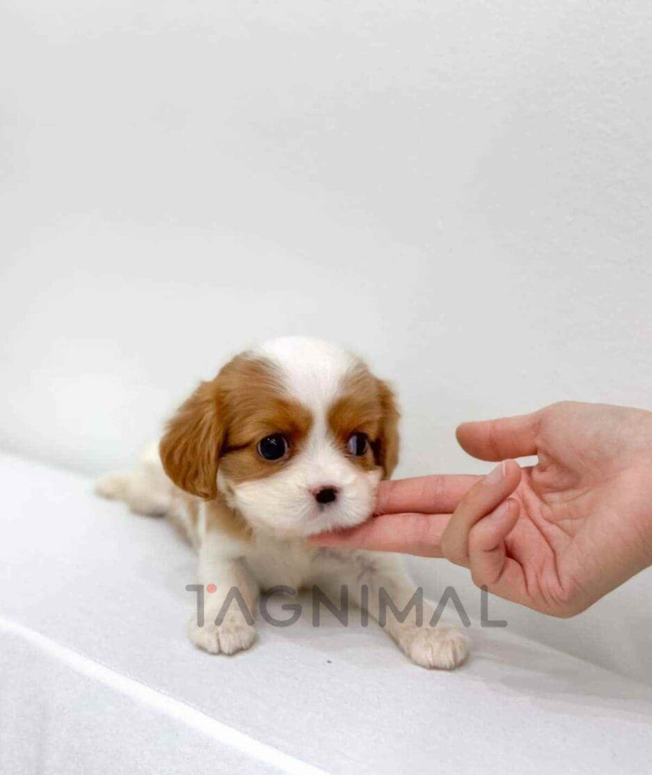 The tiny Korean baby girl with white and brown fur, beautiful brown markings, and the super mini size is now ready for a new loving home ❤️