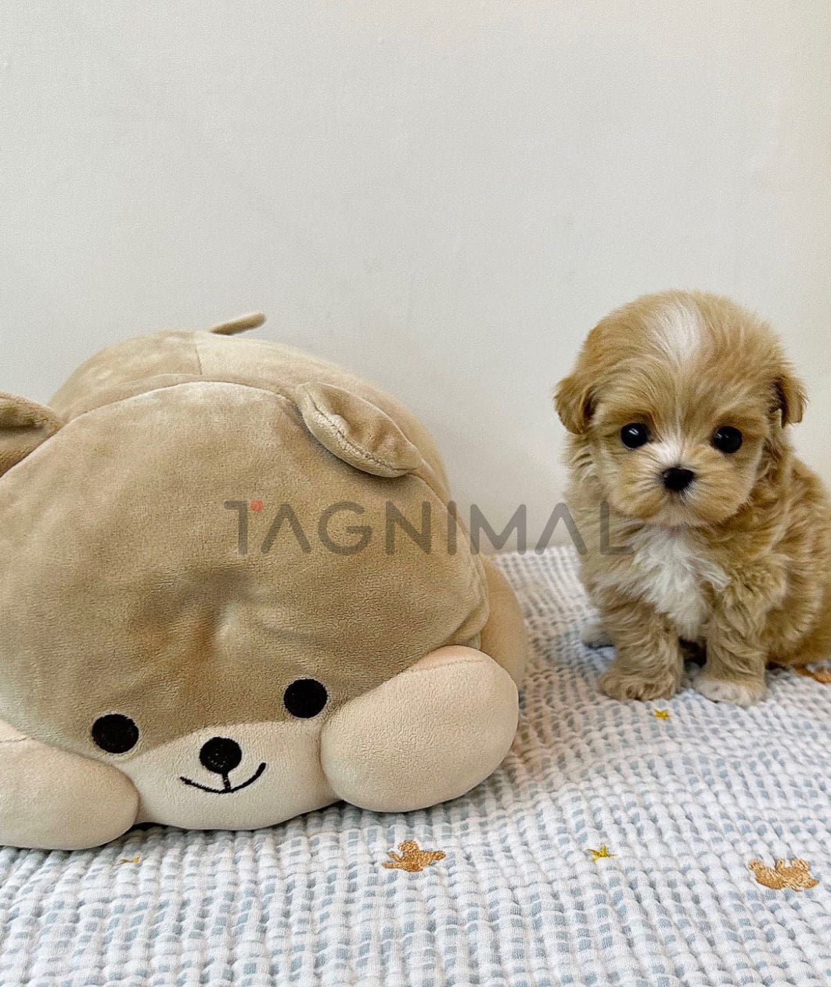 The little Maltipoo baby boy with gorgeous cream white fur, very fluffy, and very tiny Mini size is now ready for a new loving home ❤️