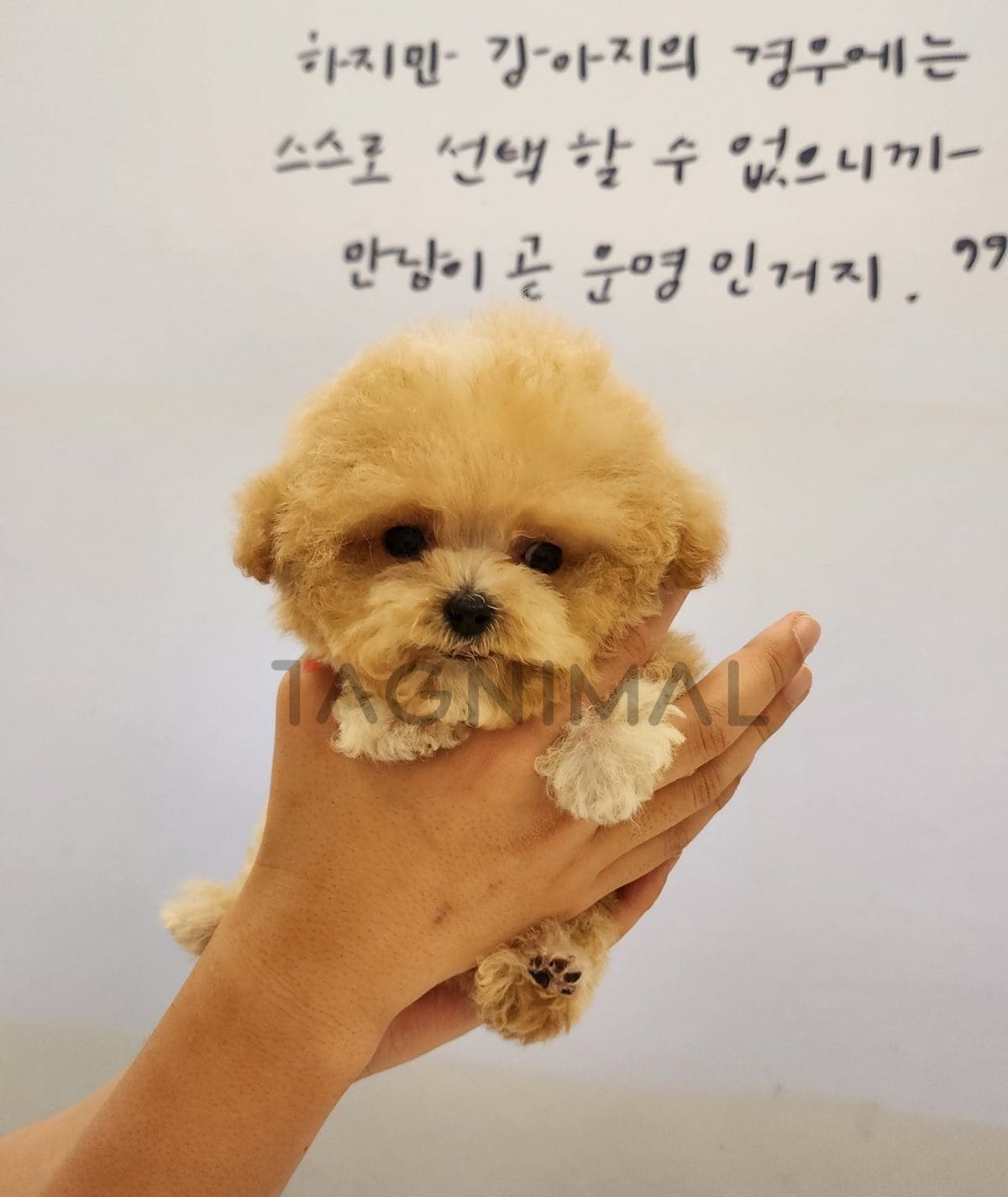 🇰🇷 IMPORT FROM SOUTH KOREA 🇰🇷 The little Maltipoo baby boy with Special cream parti color curly fur, super cute face, and tiny Teacup size is now ready for pre-order ❤️