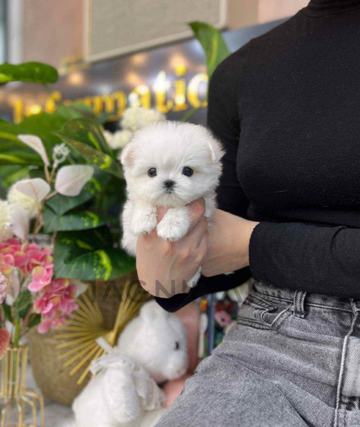 The little Korean Maltese baby girl with super fluffy white fur, an adorable face, and a tiny Teacup size is now ready for a new loving home ❤️