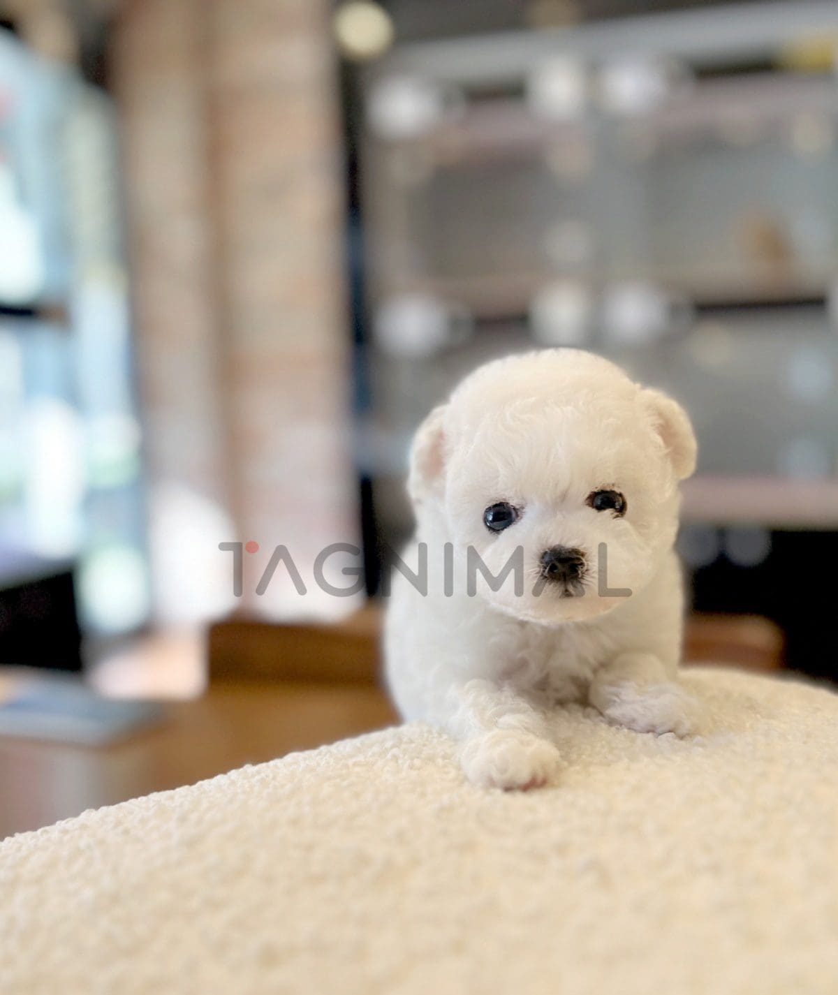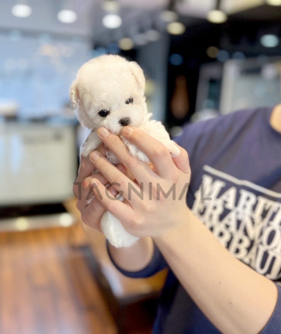 Poochon (Poodle + Bichon), one of the popular crossbreed baby boy with fluffy white fur, a round head, a short nose, and a tiny mini size is now ready for a new loving ❤️