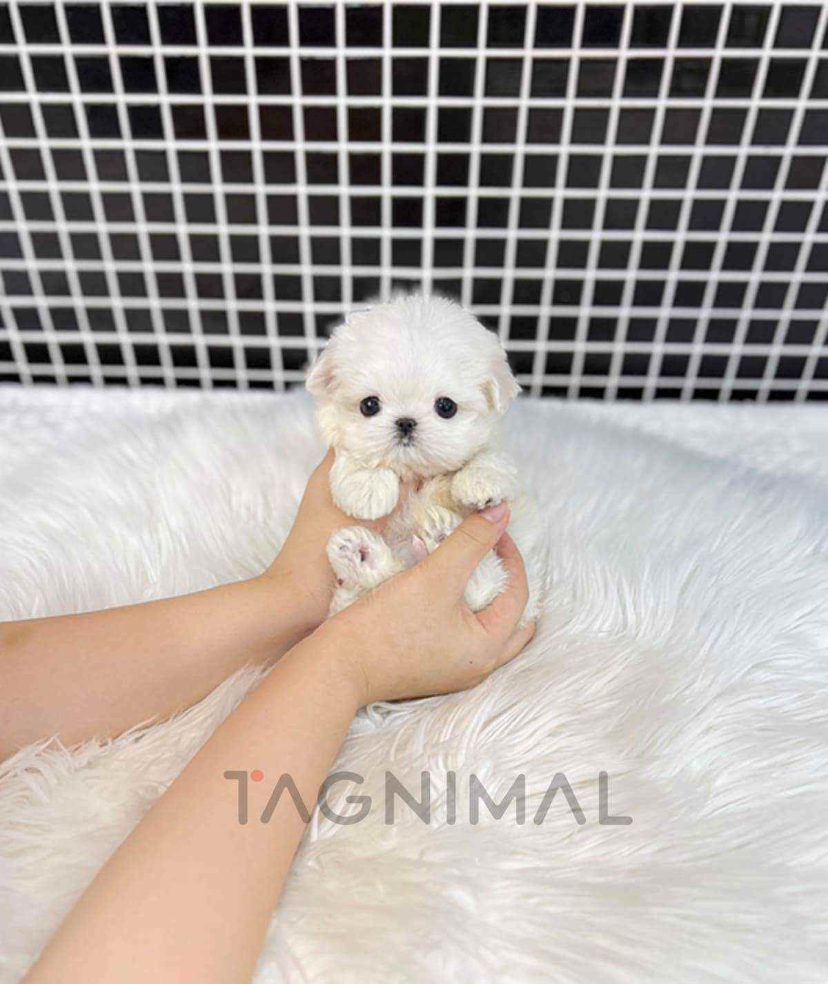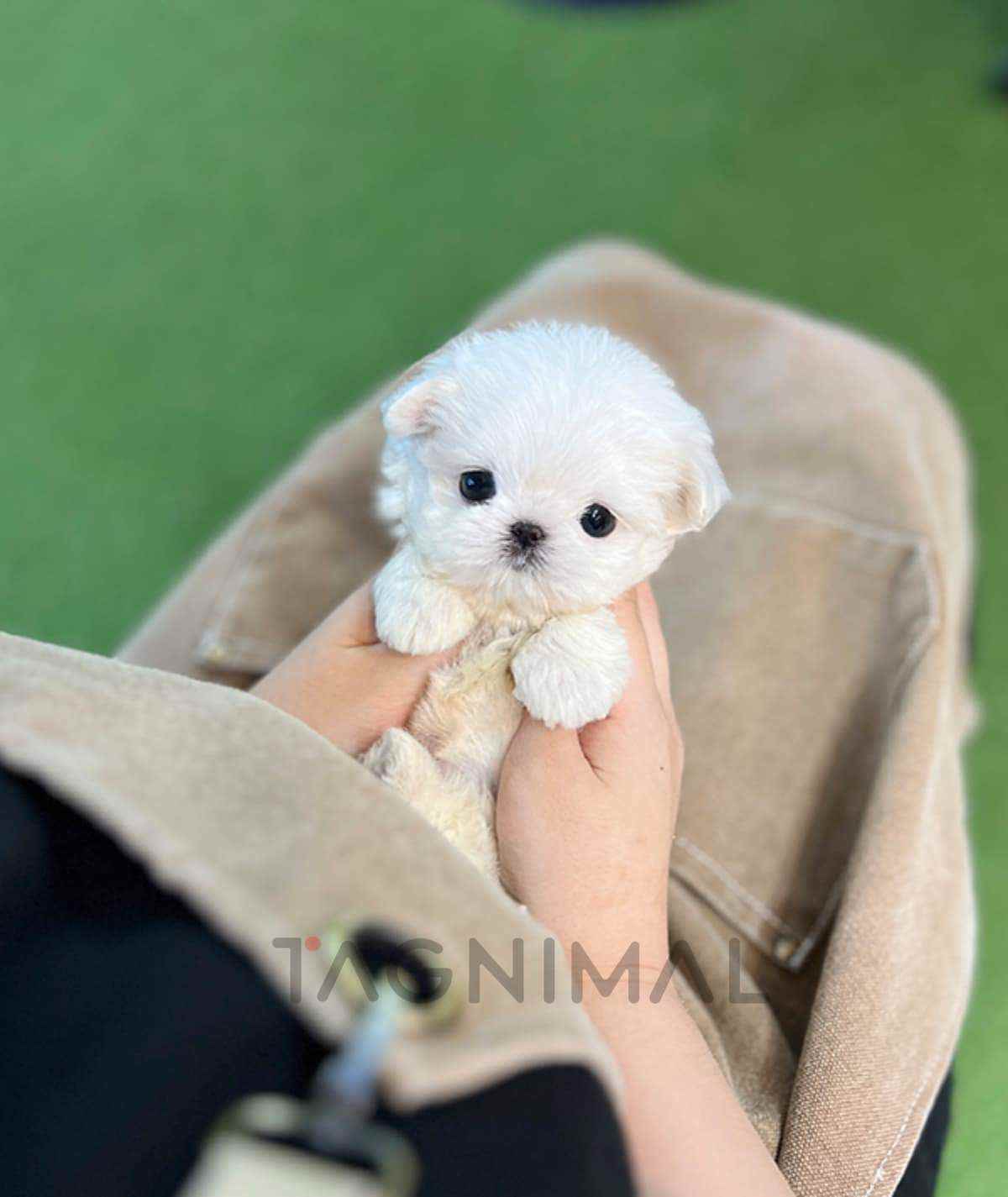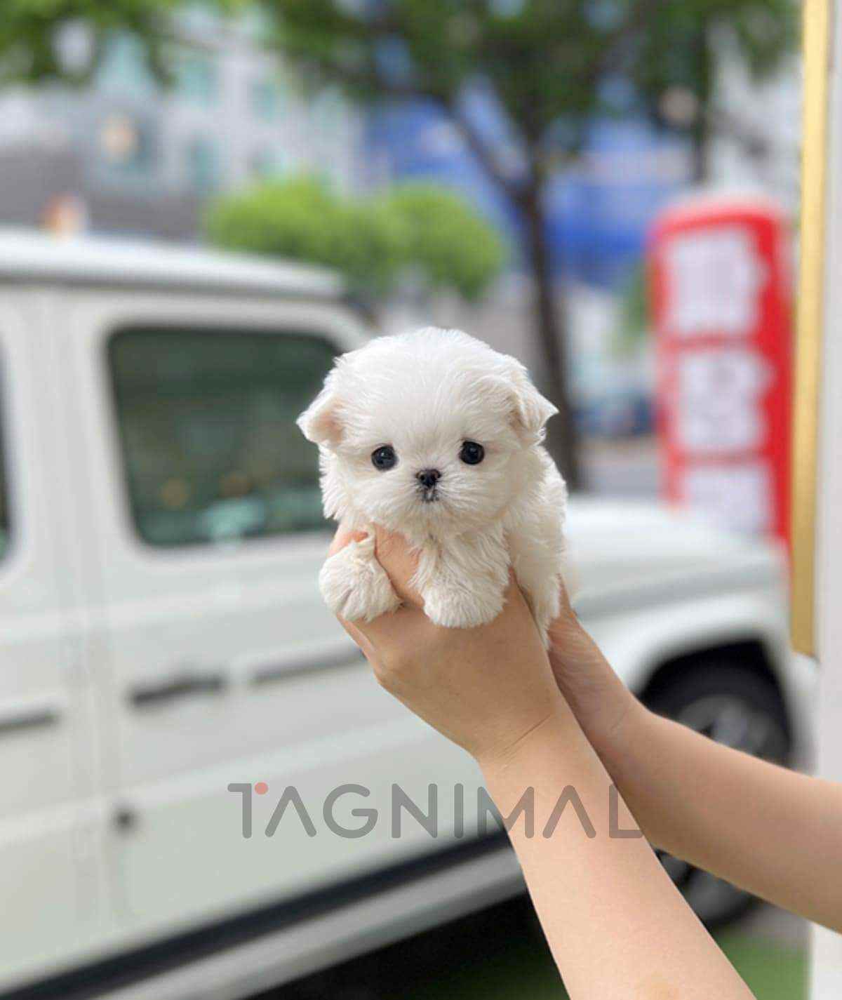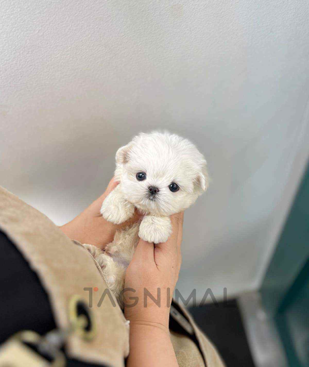 The Korean Maltese baby boy with the smallest body Teacup size, adorable face, and super fluffy white color fur is now ready for pre-order ❤️