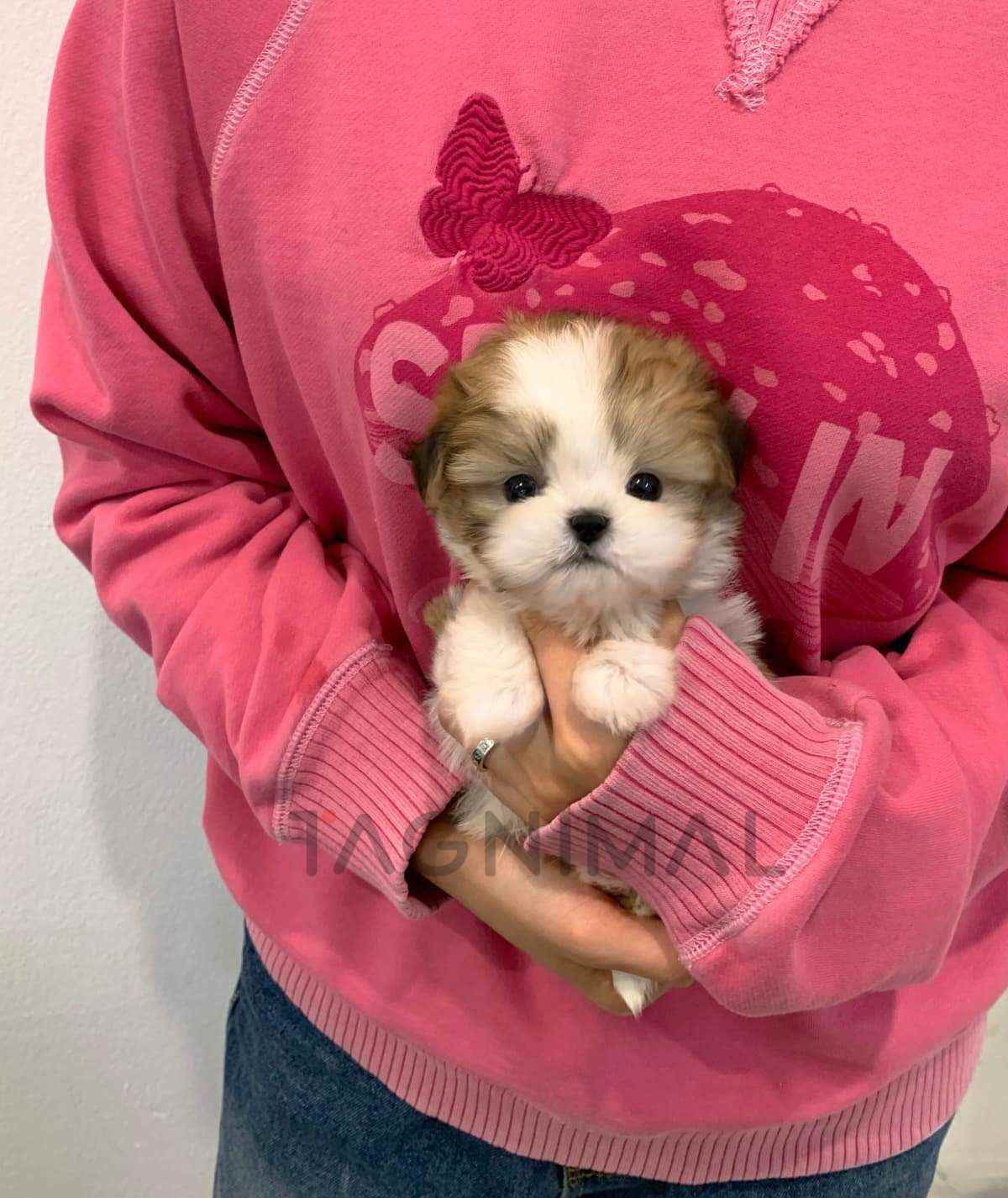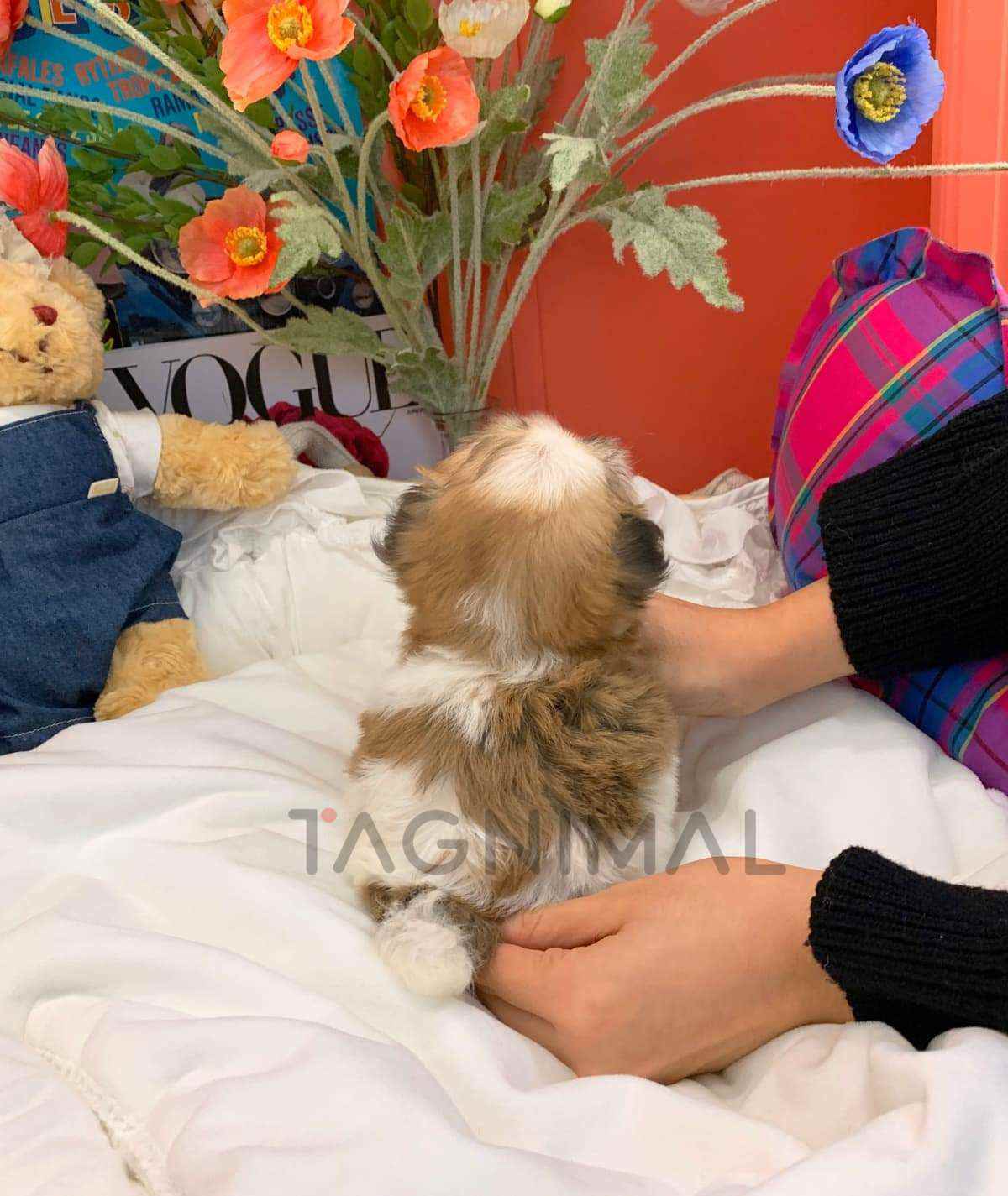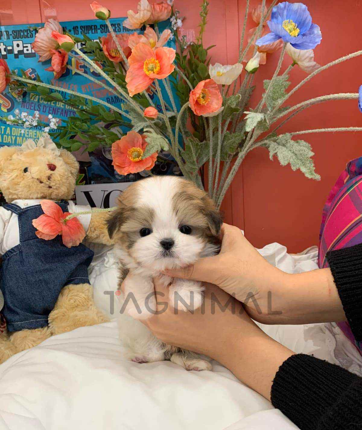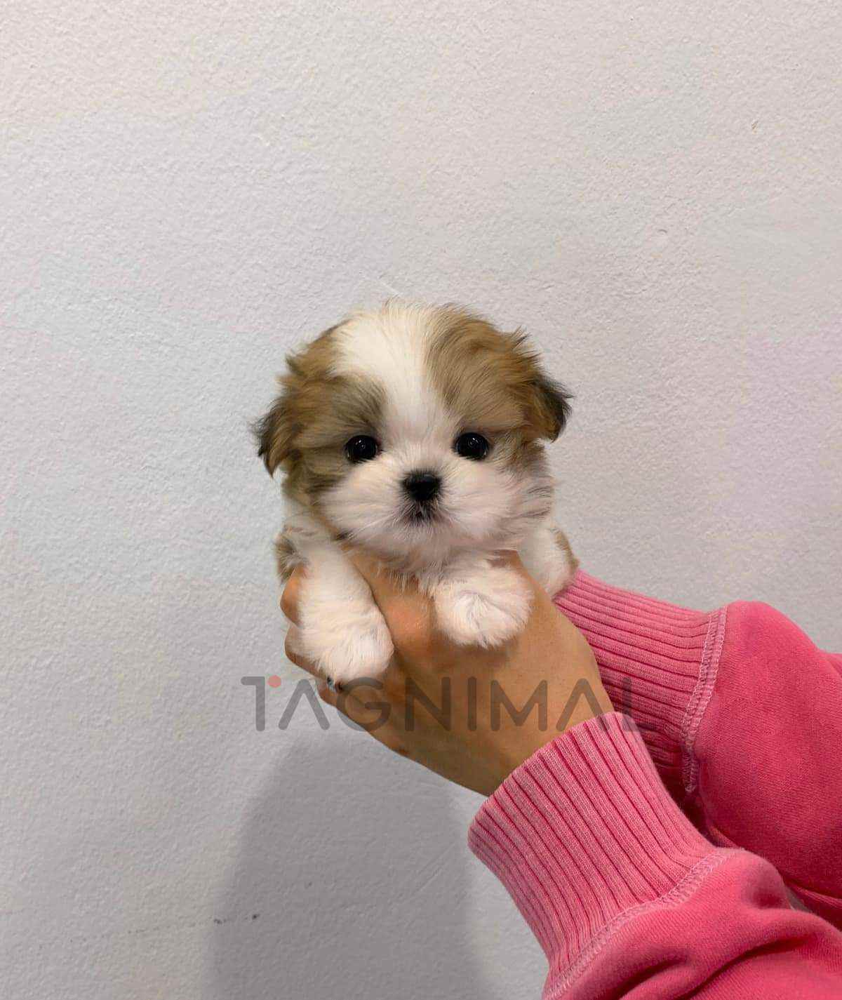 The little Korean Malshi (Maltese + Shih-Tzu) baby boy with an adorable little face, white & Almond brown fur, and a tiny mini size is now ready for a new loving home ❤️