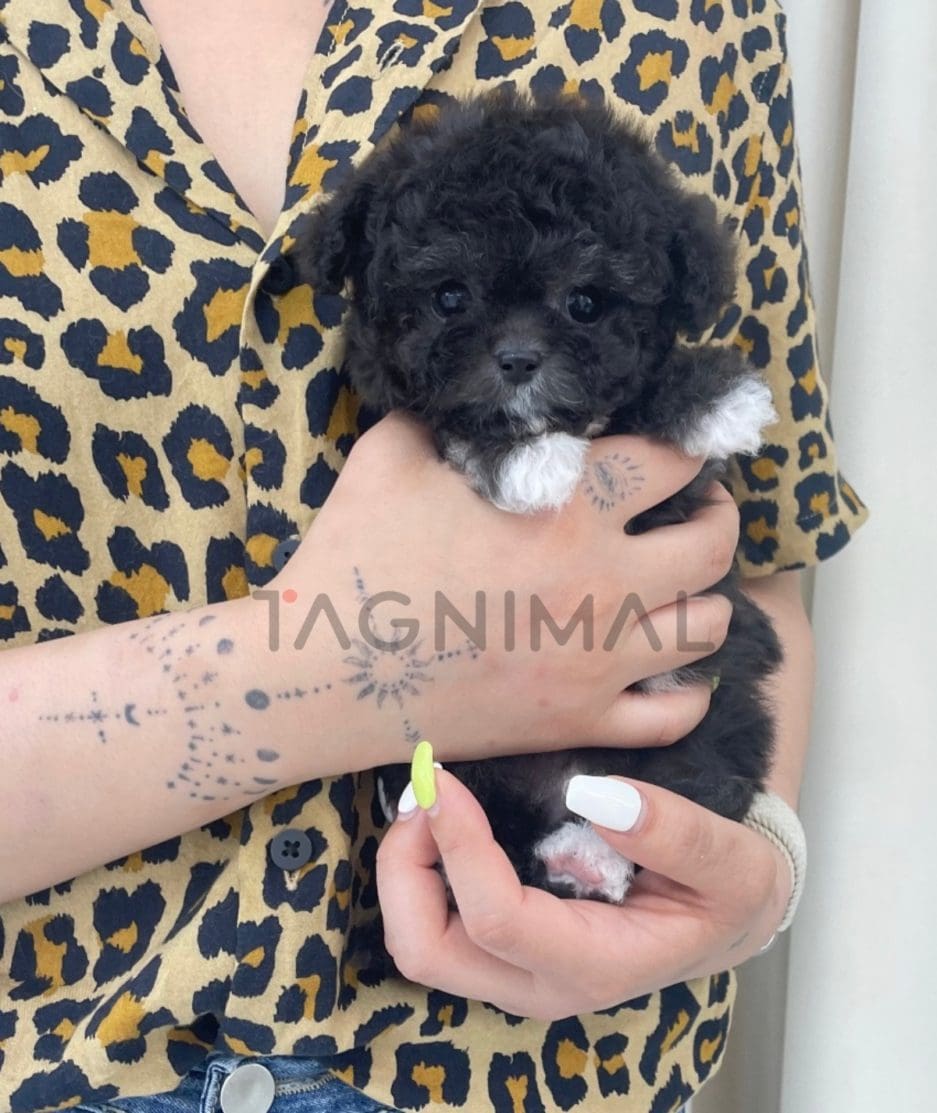 The little Korean Maltipoo baby boy with super fluffy Parti color fur and unique vivid markings and ready for a new loving home ❤️