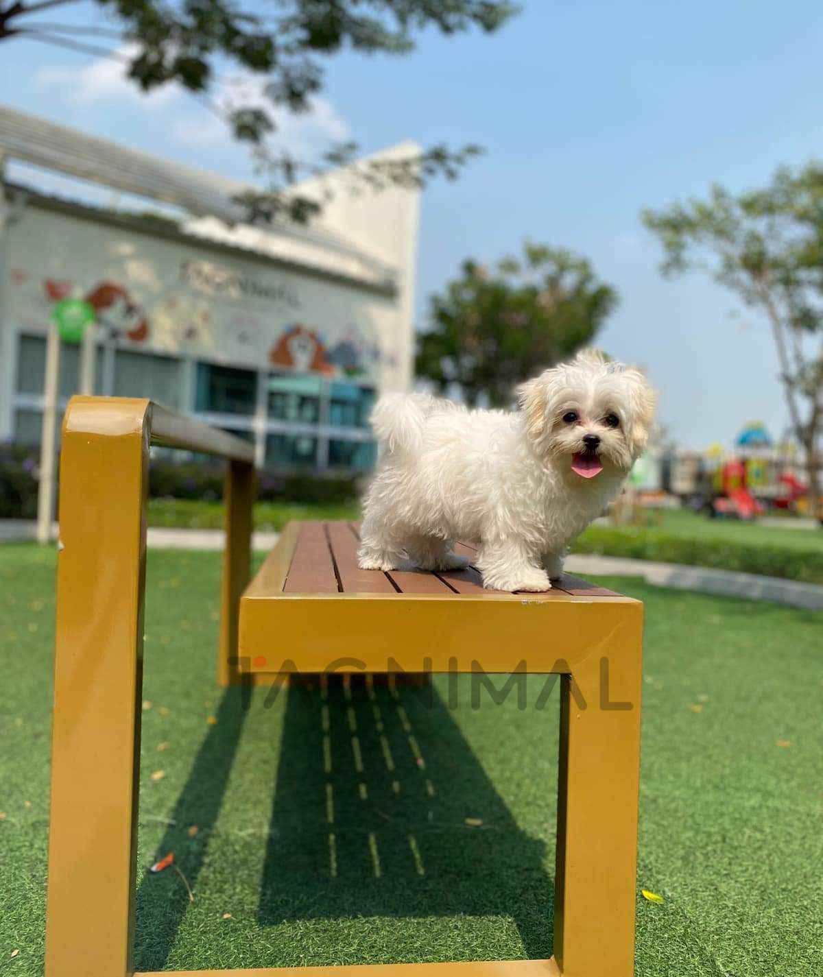 The Maltipoo (Maltese + Poodle) baby boy with stunning cream white fur, Korean bloodline (Dad and Mom imported from Korea), and mini size is now ready for pre-order ❤️