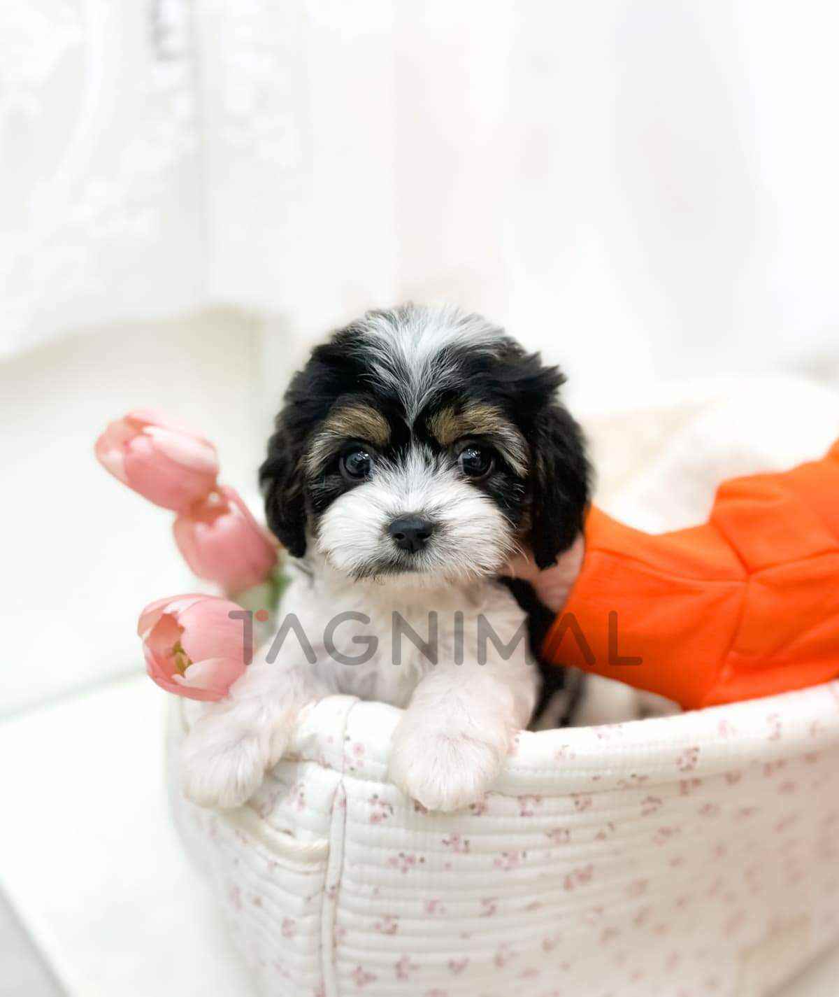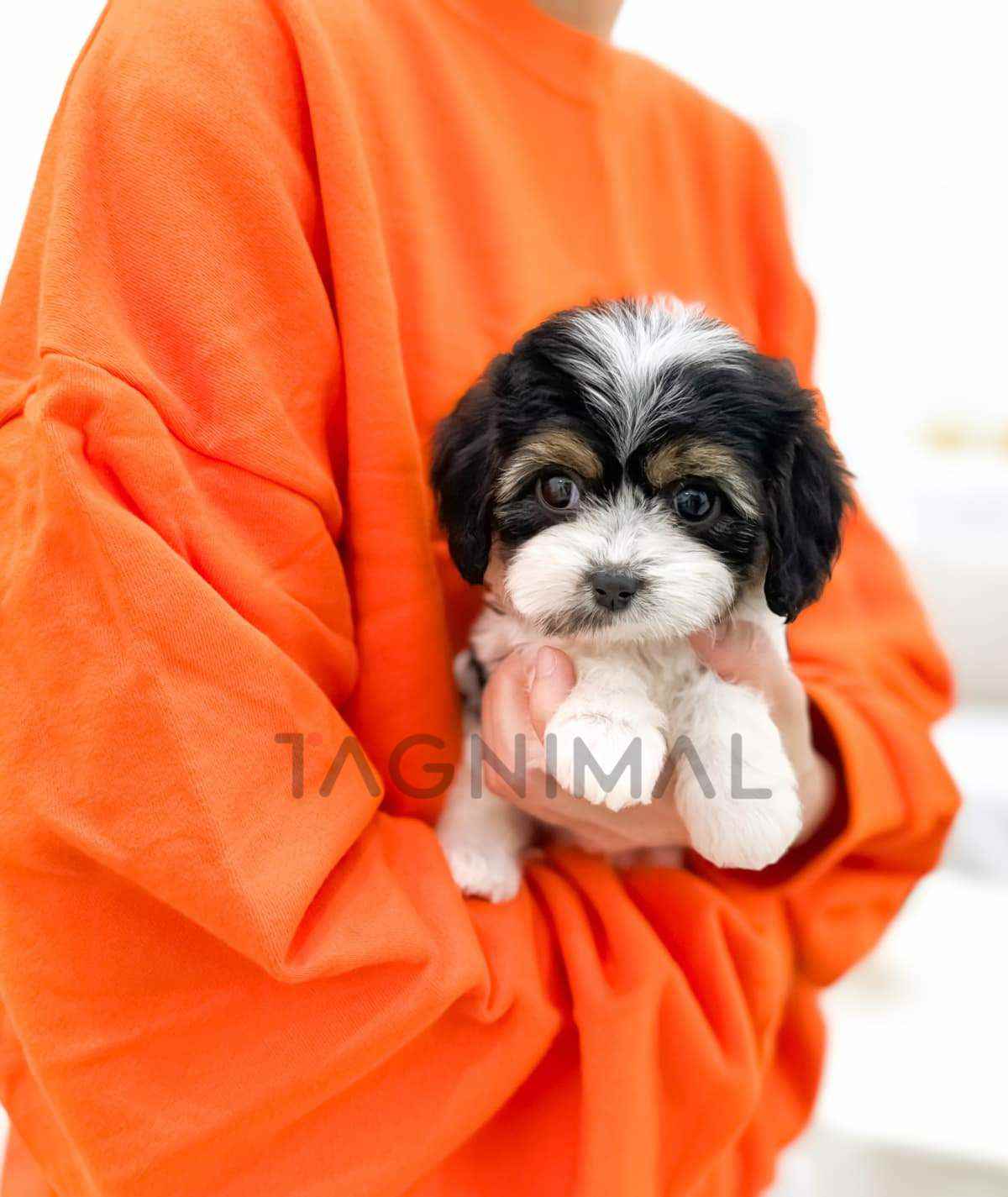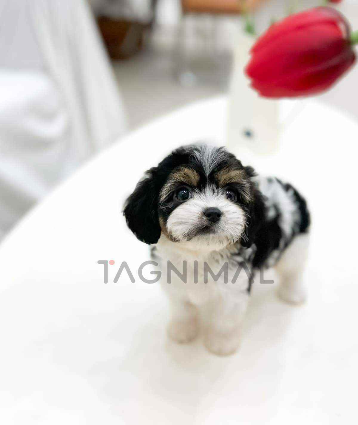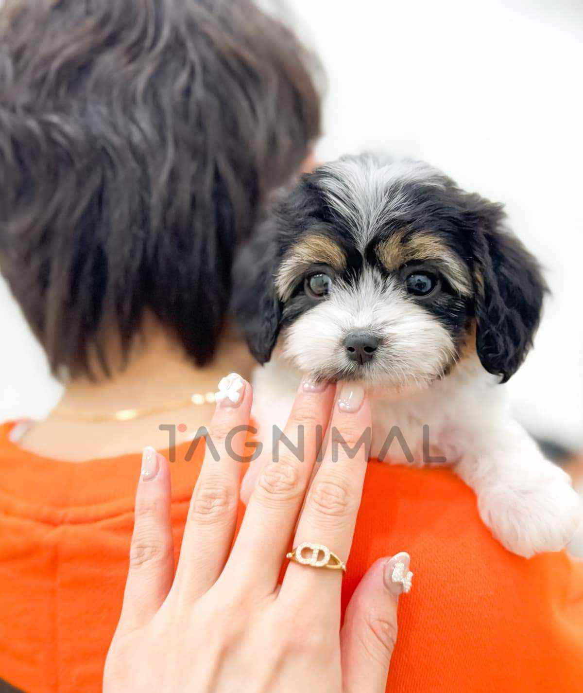 The little Korean Cavapoo baby girl with the hybrid breed (Cavalier King Charles Spaniel + Poodle), adorable face, Beautiful curly Tricolor fur, and the perfect size for cuddling is now ready for a new loving home ❤️