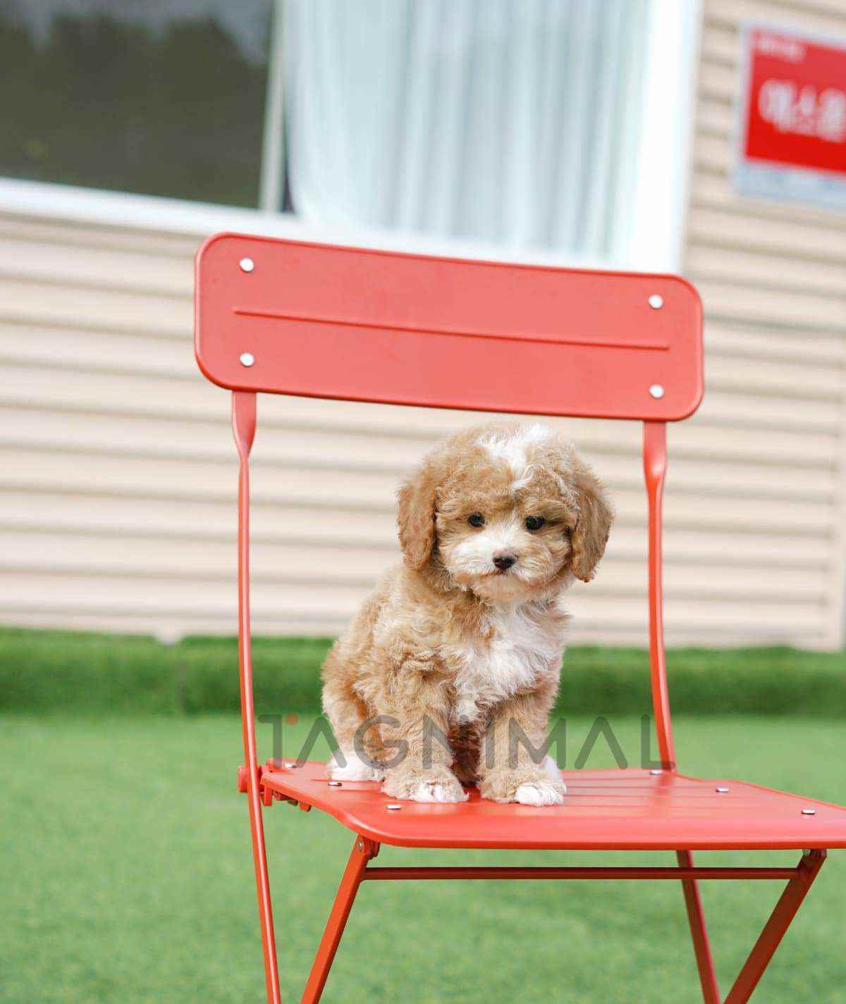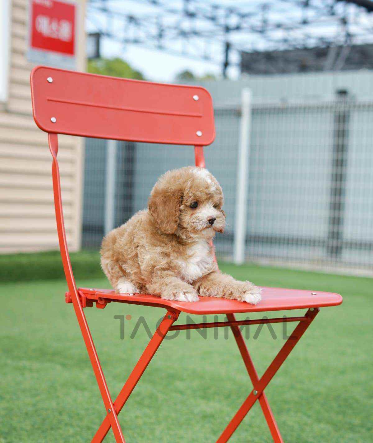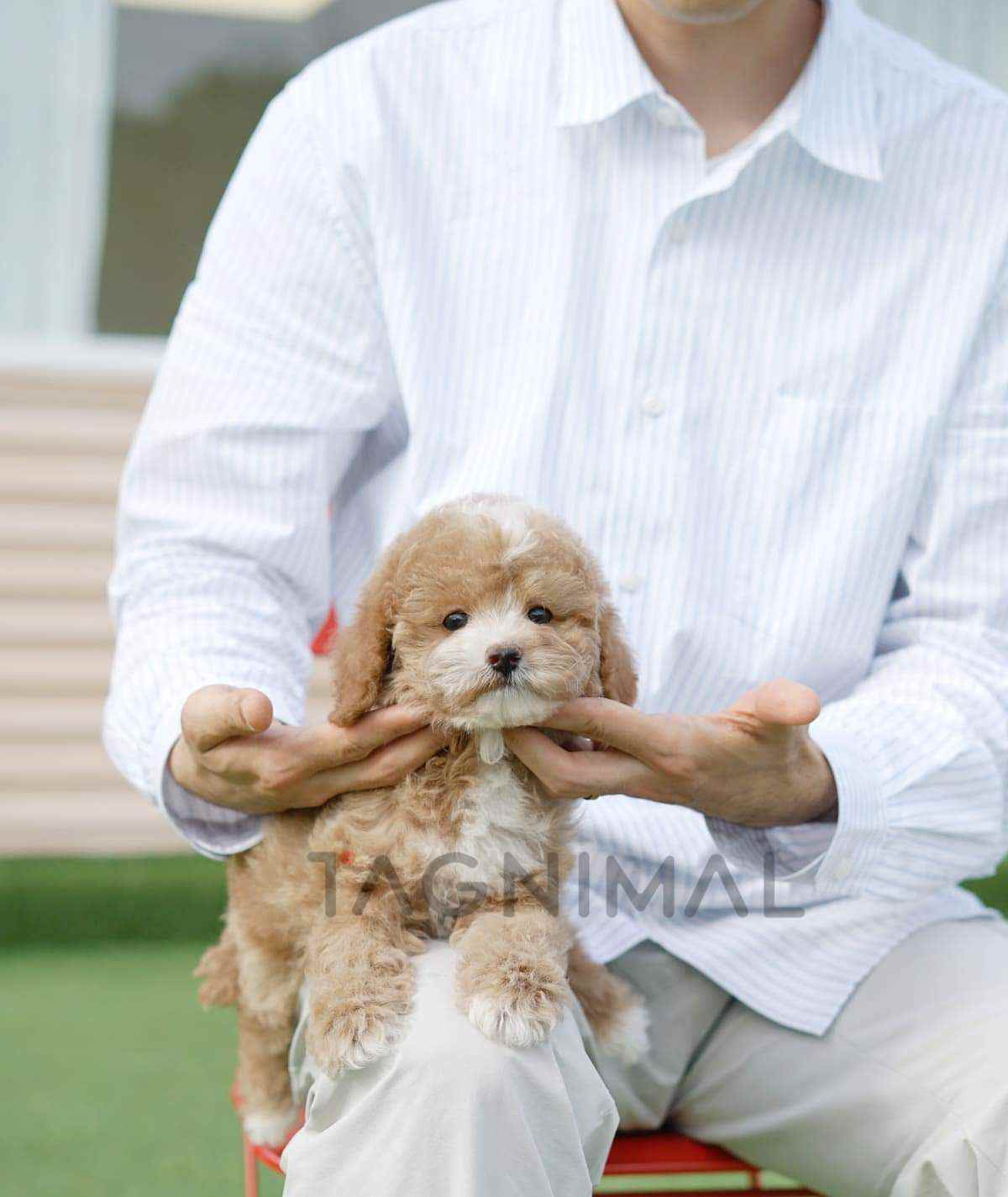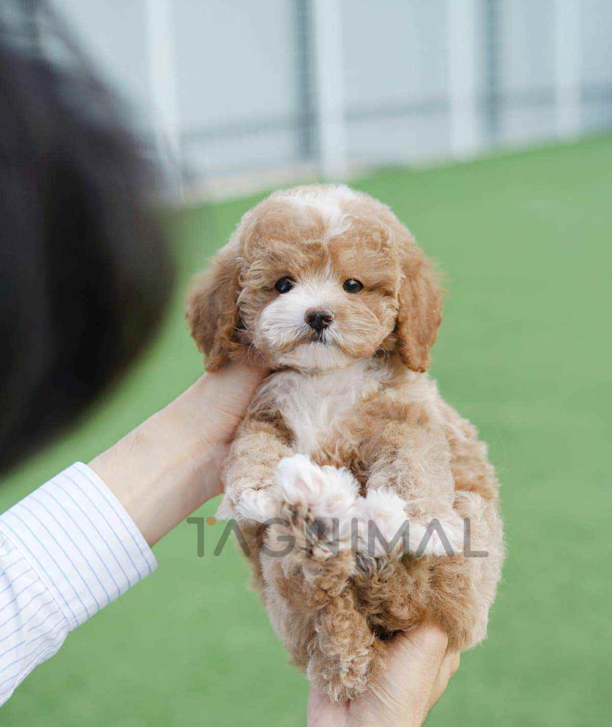 The little Korean Goldendoodle baby boy with the hybrid breed (Golden + Poodle), adorable face, Beautiful curly brown fur, and the perfect size for cuddling is now ready for a new loving home ❤️