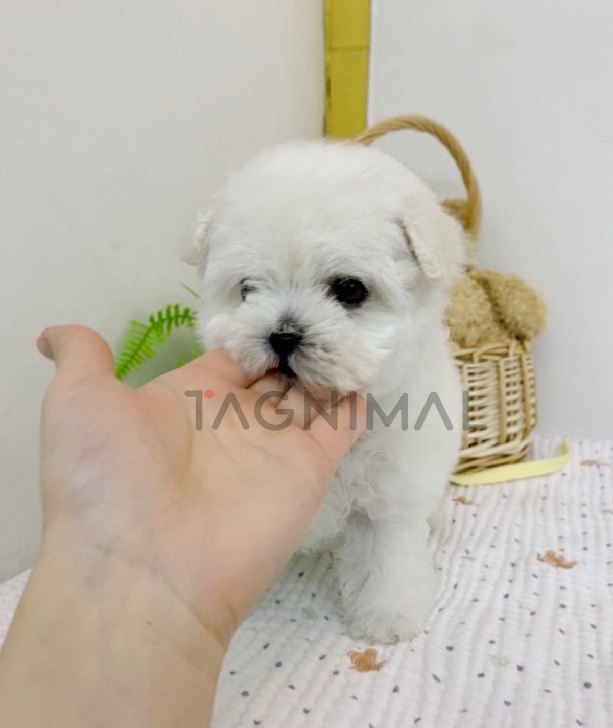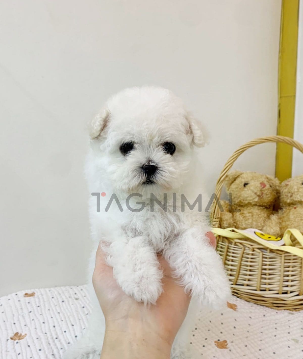 The little Korean Bichon Frise baby boy with sweet looks, super fluffy white fur, and a tiny mini size is now ready for a new loving home ❤️