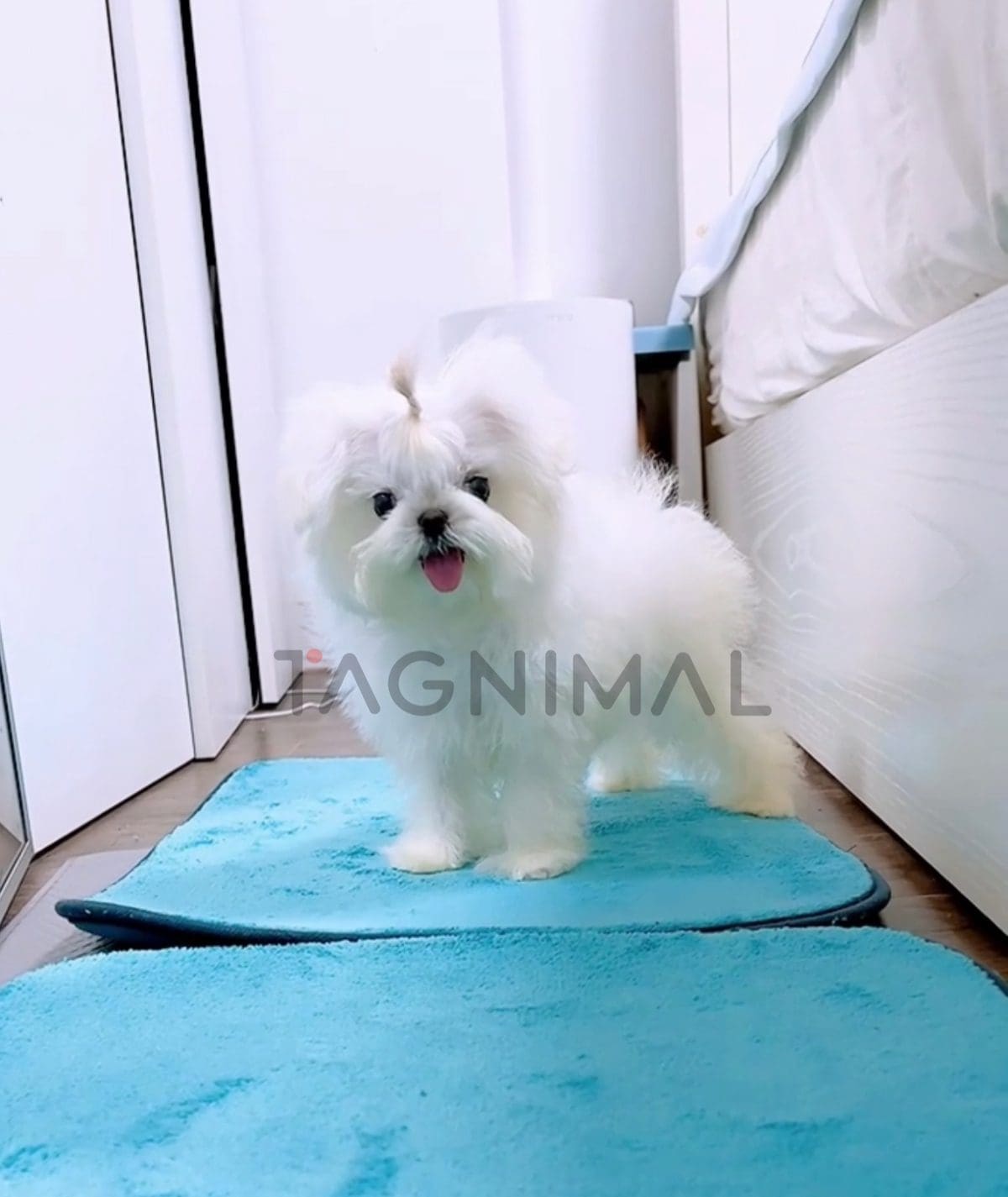 The Korean Maltese baby girl with the smallest body Teacup size, adorable face, and super fluffy white color fur is now ready for pre-order ❤️