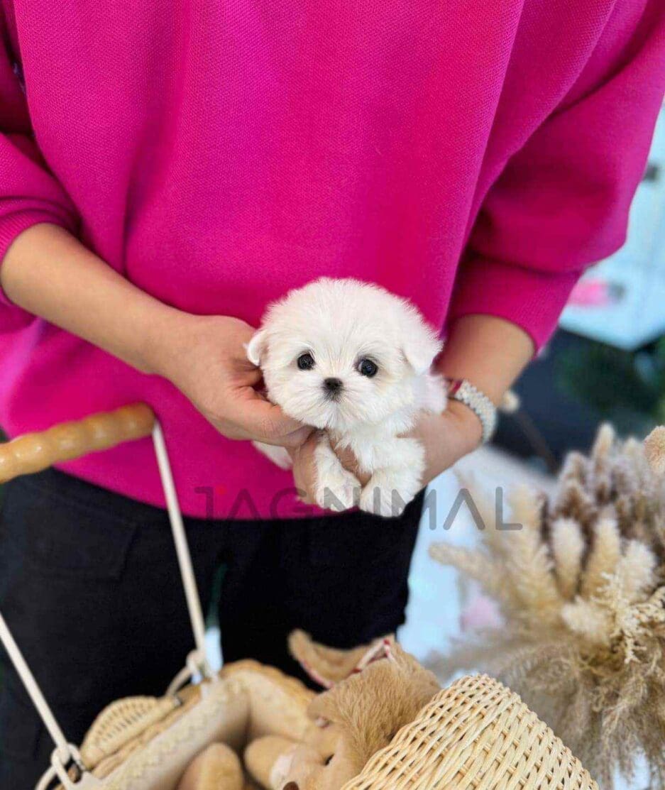 The little Korean Maltese baby girl with super fluffy white fur, an adorable face, and a tiny mini size is now ready for a new loving home ❤️
