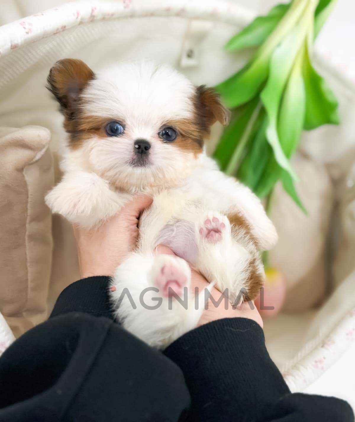 The Korean rare Shichi (Chihuahua + Shih-Tzu) baby boy with the cute little face, Classic & famous white and brown fur with blue eyes and mini size is now ready for a new loving home ❤️