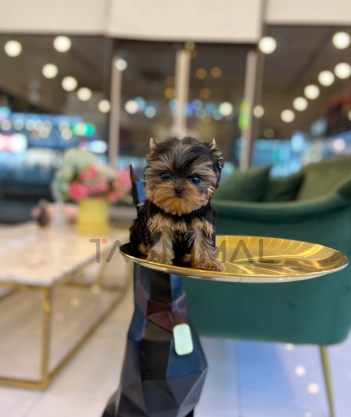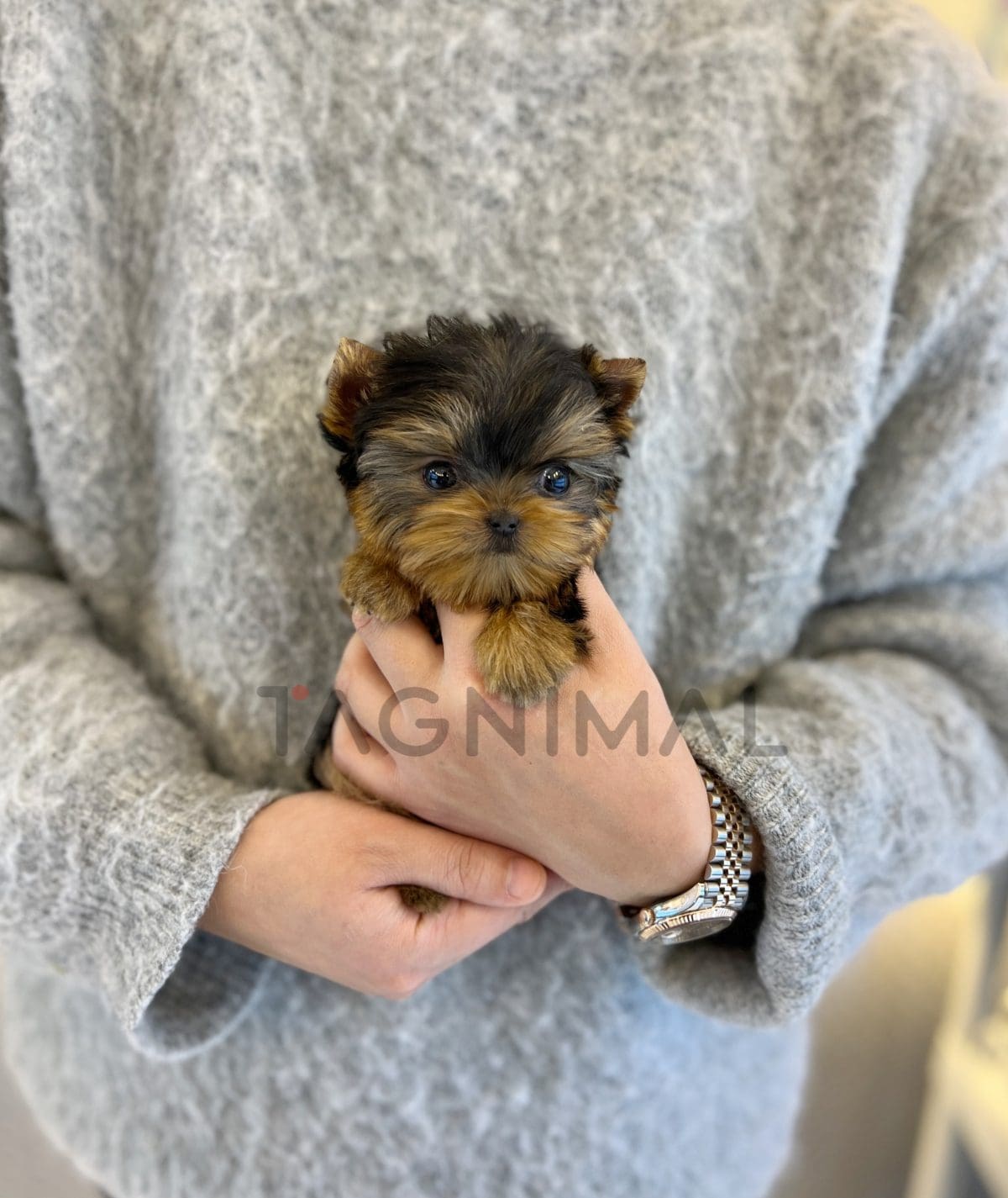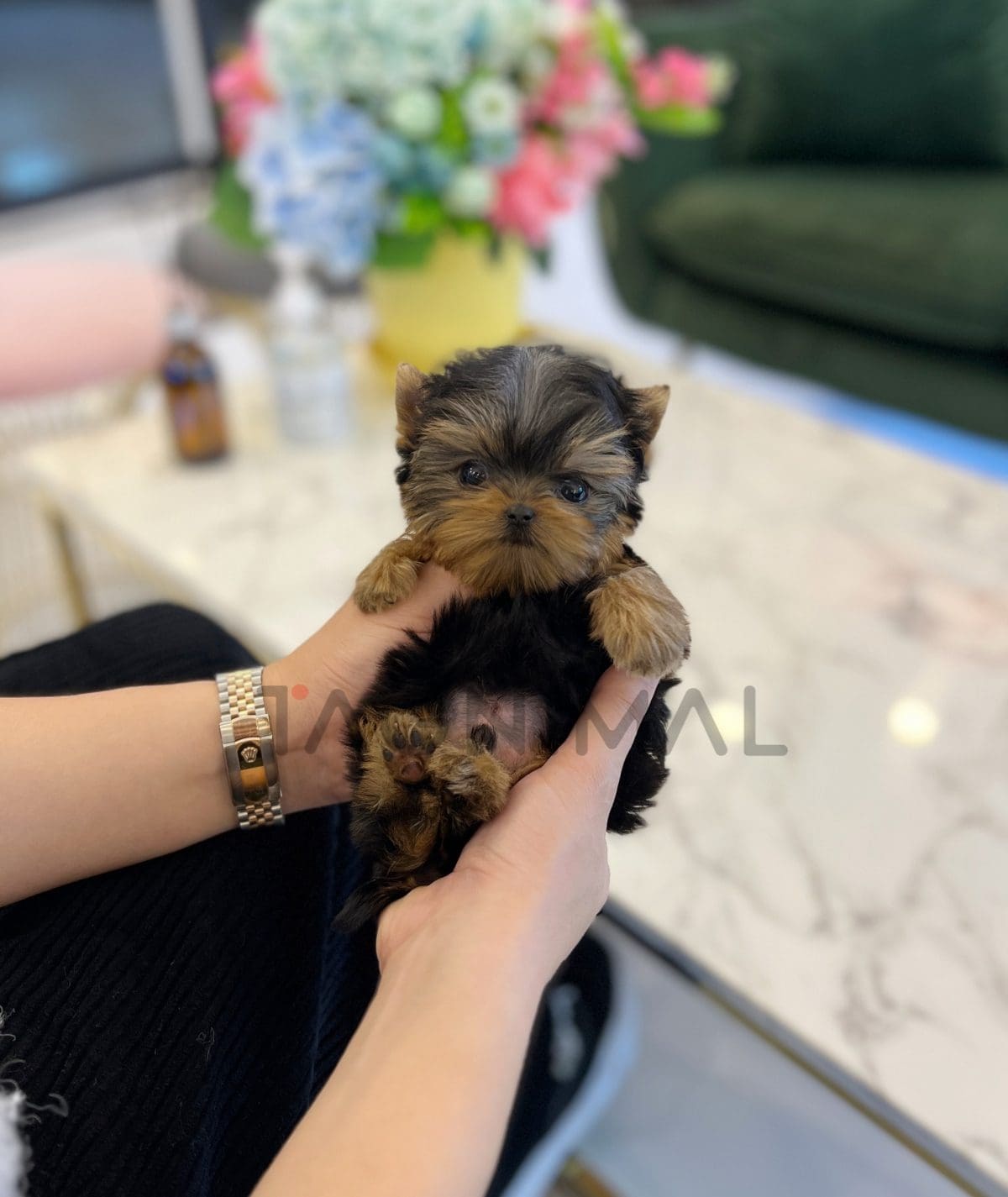 The tiny Korean Yorkshire Terrier baby boy with an amazingly cute little face&body, charming black silver fur, and Teacup size is now ready for a new loving home ❤️