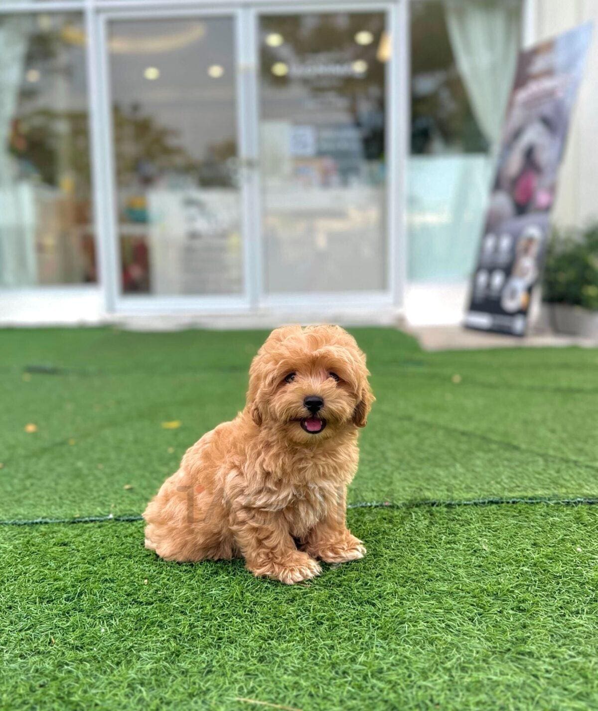 The Maltipoo (Maltese + Poodle) baby boy with stunning cream white fur, Korean bloodline (Dad and Mom imported from Korea), and mini size is now ready for pre-order ❤️