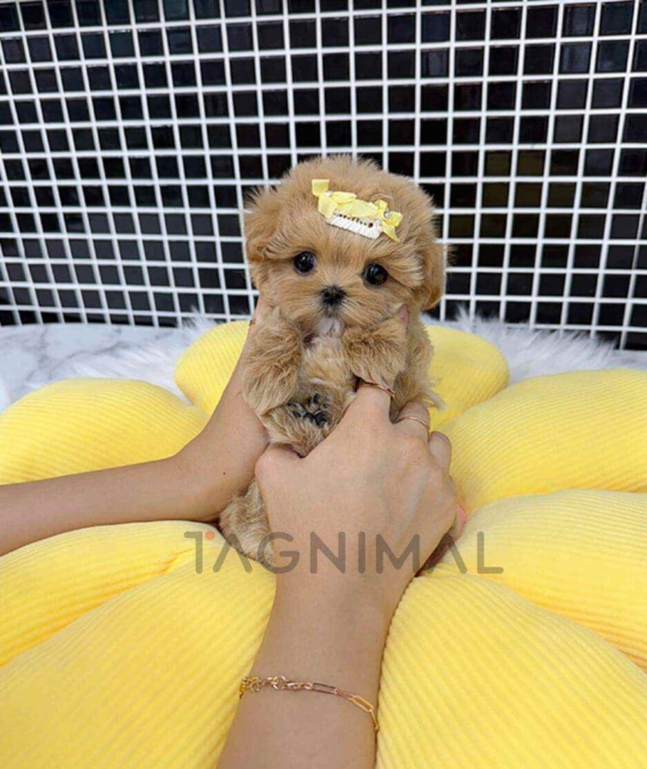 The little Korean Maltipoo baby boy with big eyes, super fluffy cream brown fur, and the cute Teacup size is now ready for a new loving home ❤️