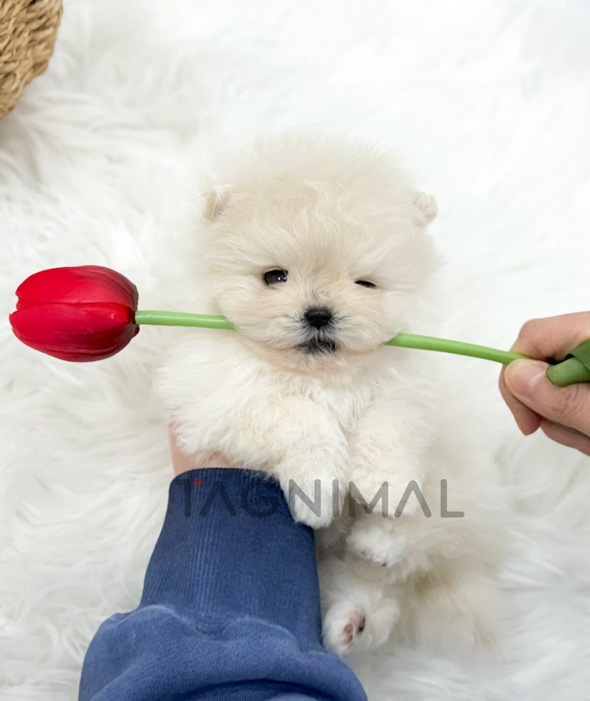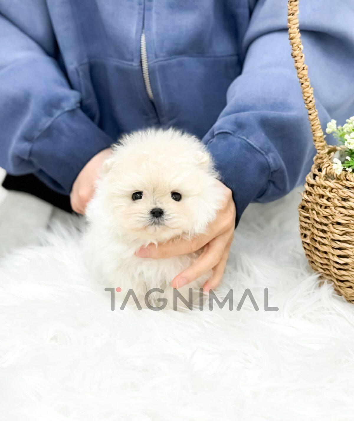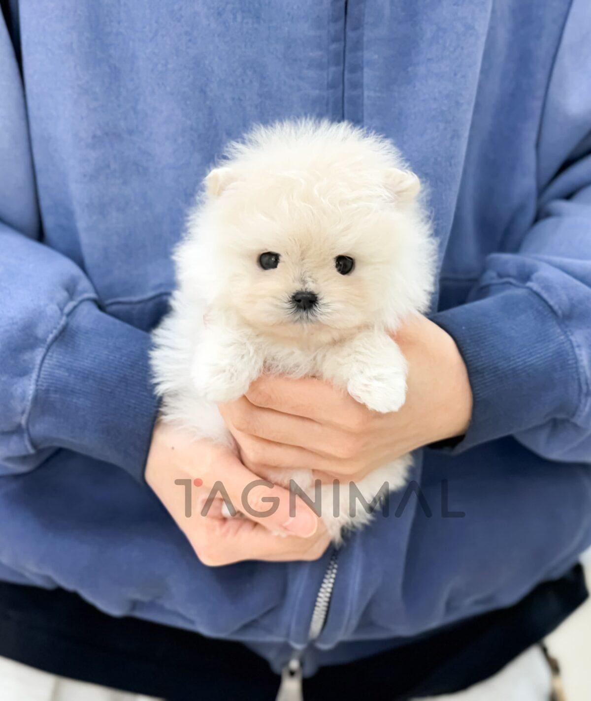 The little Korean Pomapoo (Pomeranian + Poodle) baby girl with an adorable face and beautiful white cream fur is now ready for a new loving home ❤️