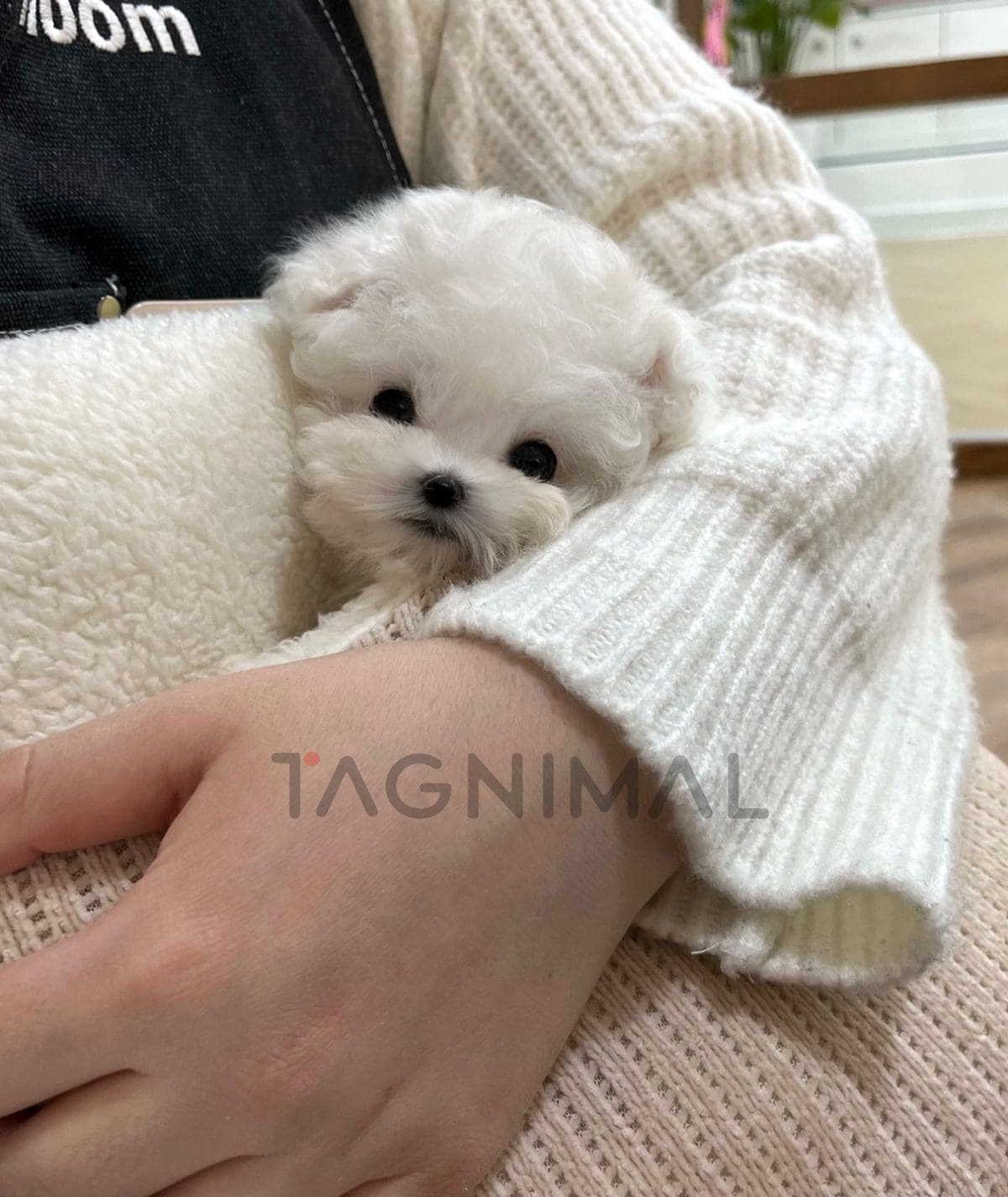 The little Korean Bichon Frise baby girl with sweet looks, super fluffy white fur, and tiny mini size is now ready for a new loving home ❤️