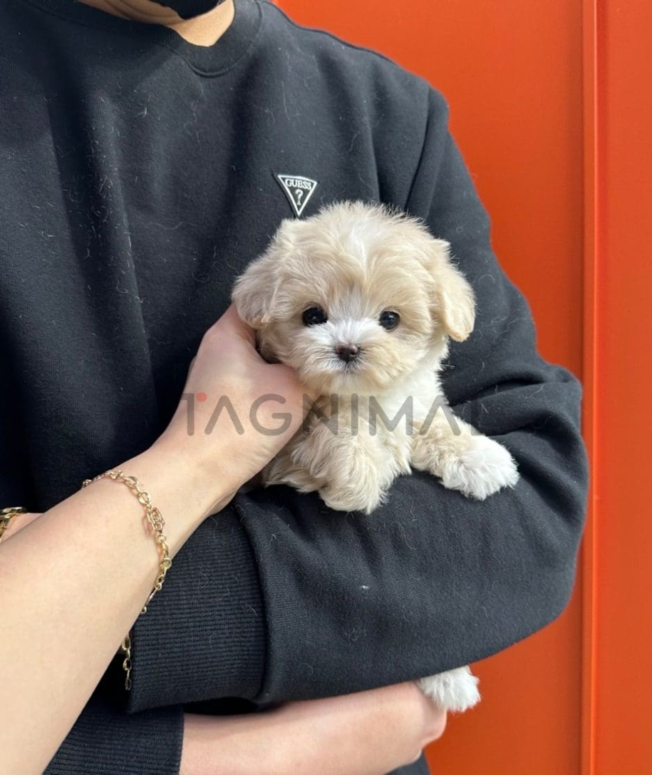 The little Korean Maltipoo baby girl with sweet looks, super fluffy cream brown fur, and a tiny mini size is now ready for a new loving home ❤️