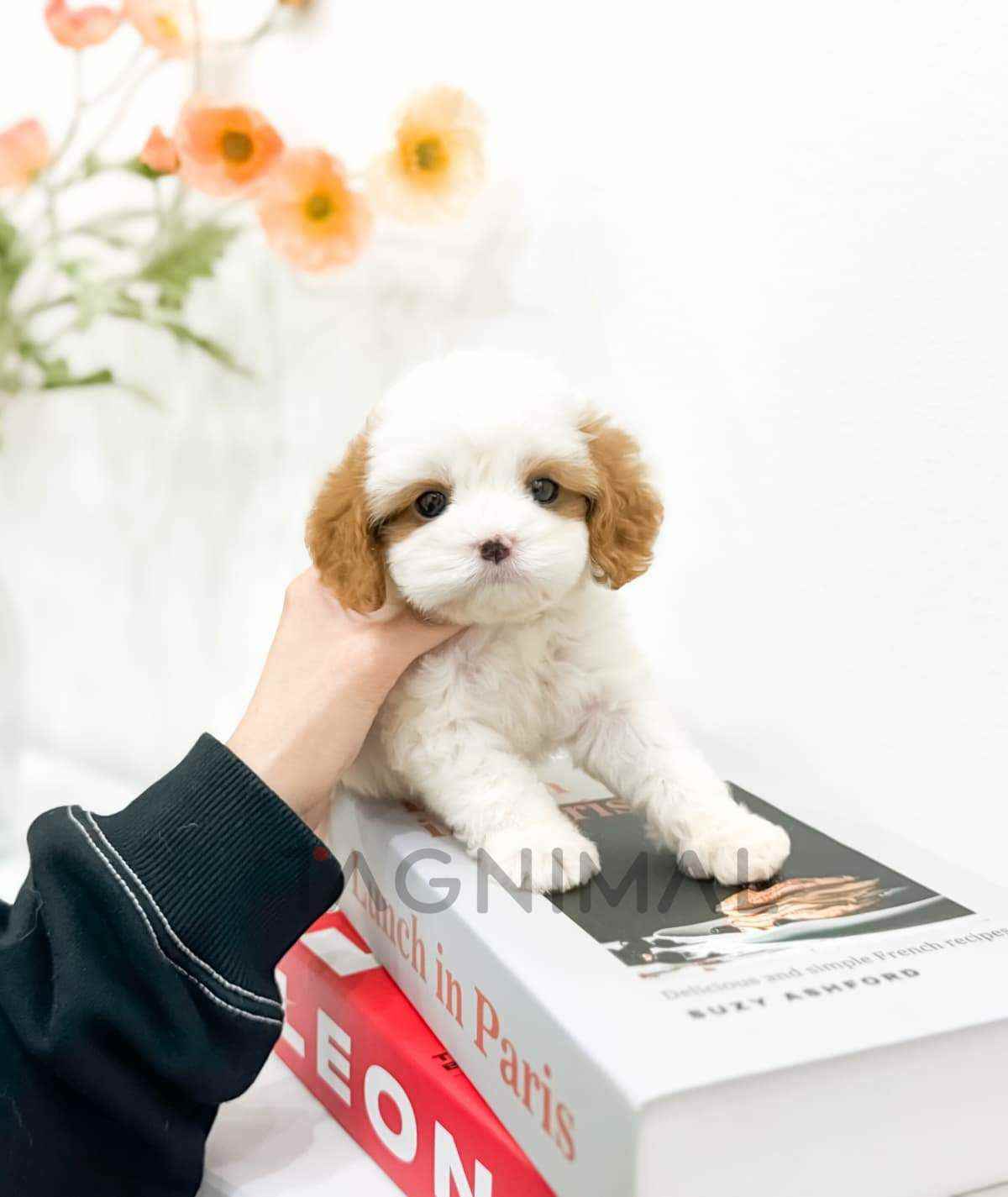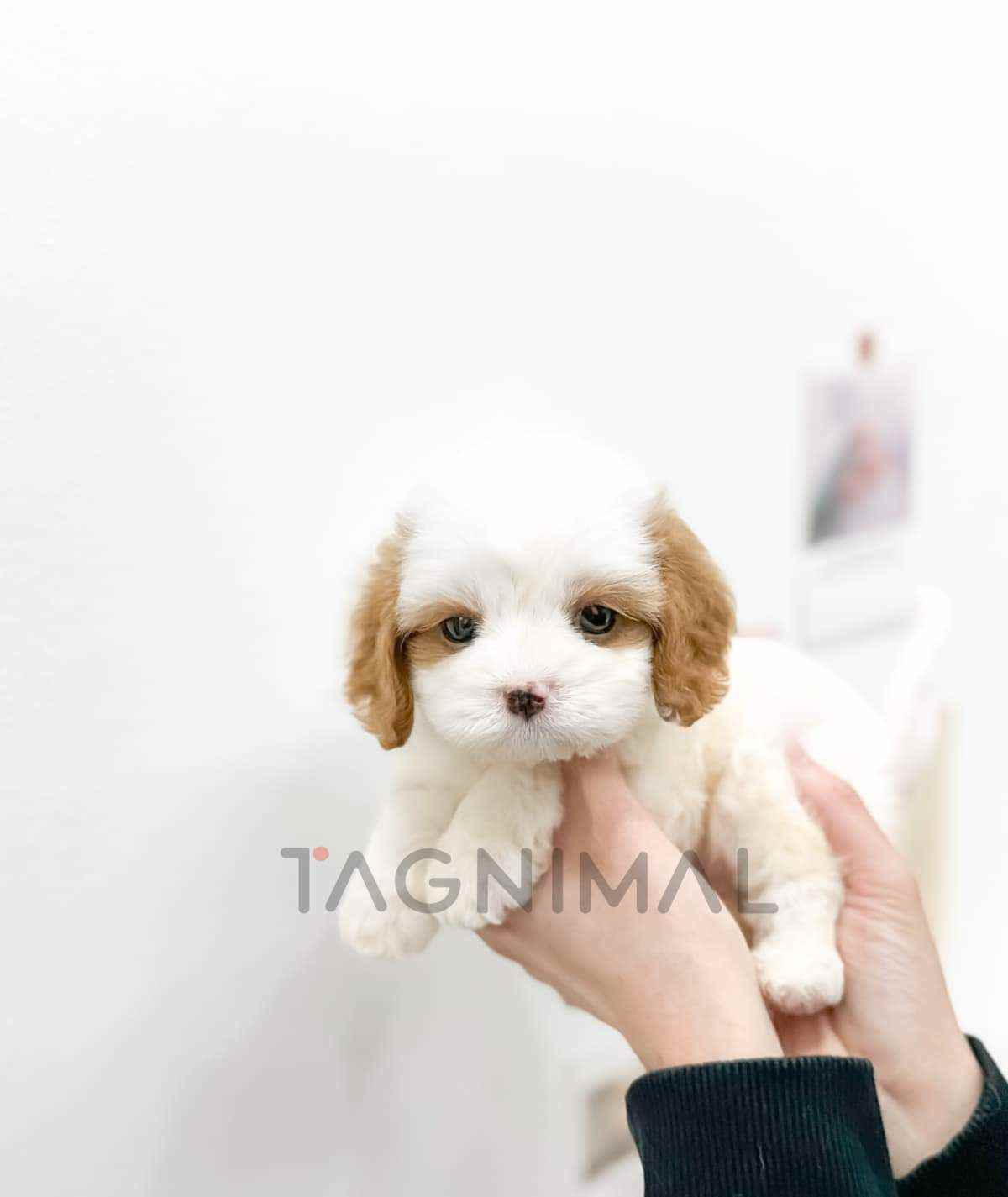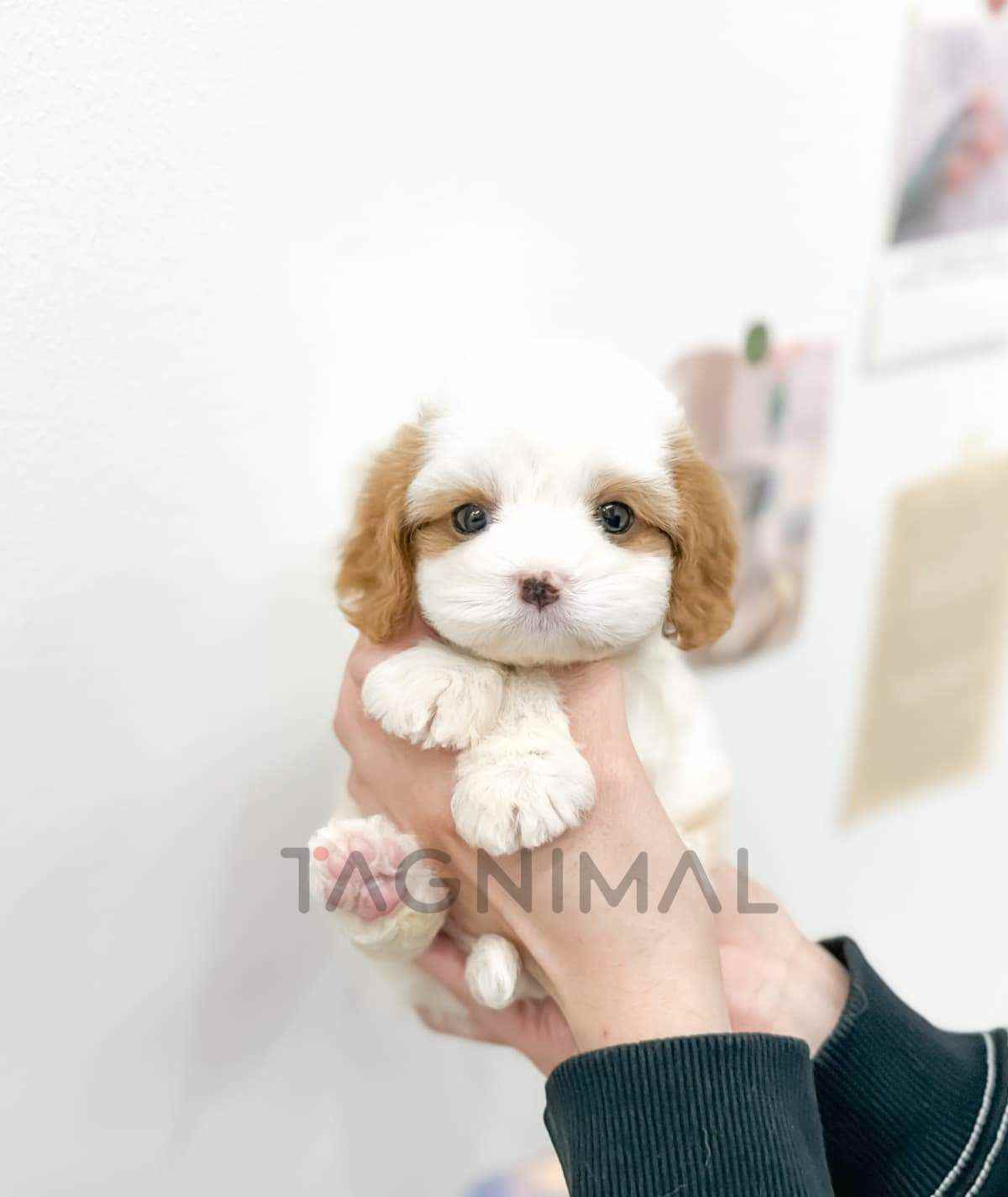 The little Korean Cavachon baby boy with the hybrid breed (Cavalier King Charles Spaniel + Bichon), adorable face, Beautiful curly white cream fur, and the perfect size for cuddling is now ready for a new loving home ❤️