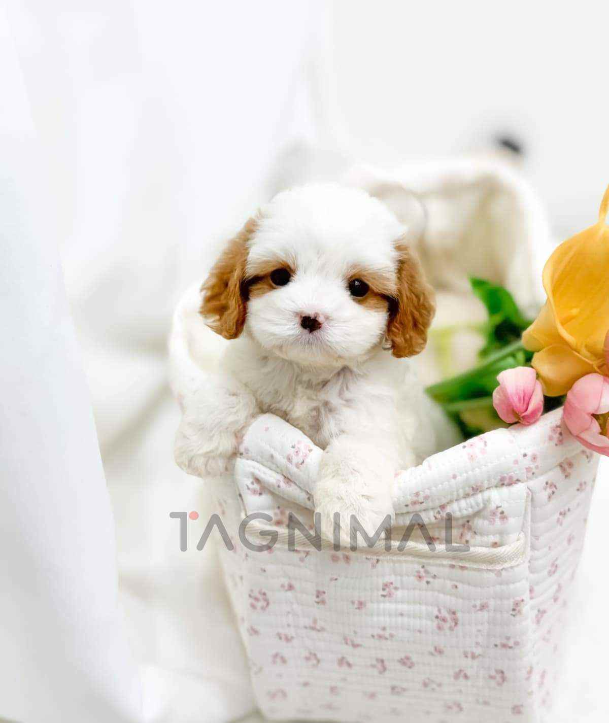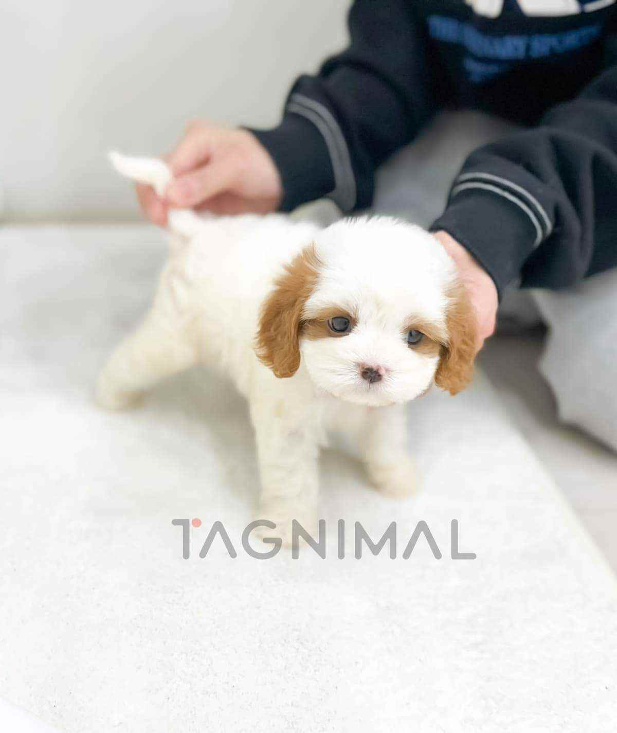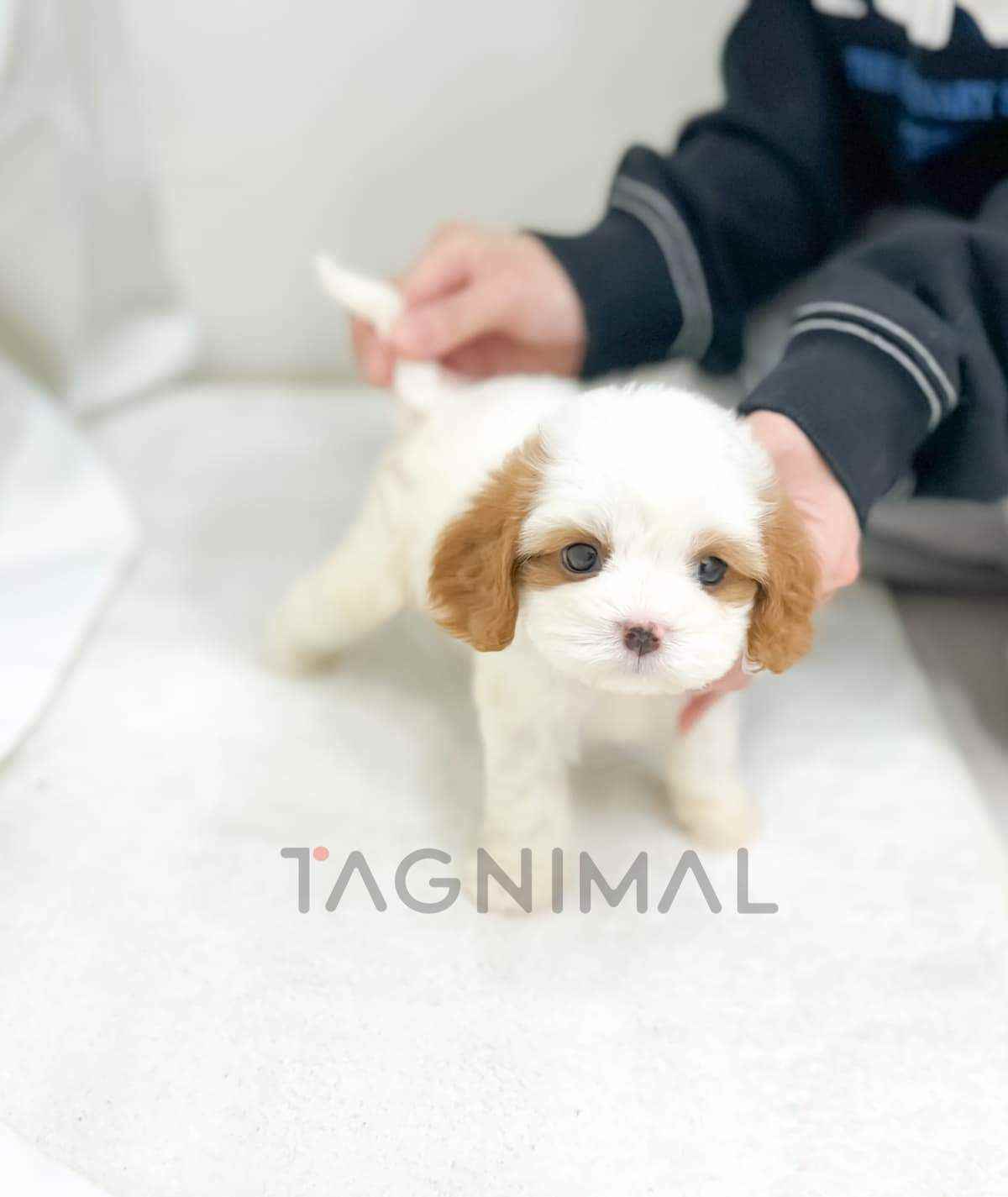 The little Korean Cavachon baby boy with the hybrid breed (Cavalier King Charles Spaniel + Bichon), adorable face, Beautiful curly white cream fur, and the perfect size for cuddling is now ready for a new loving home ❤️
