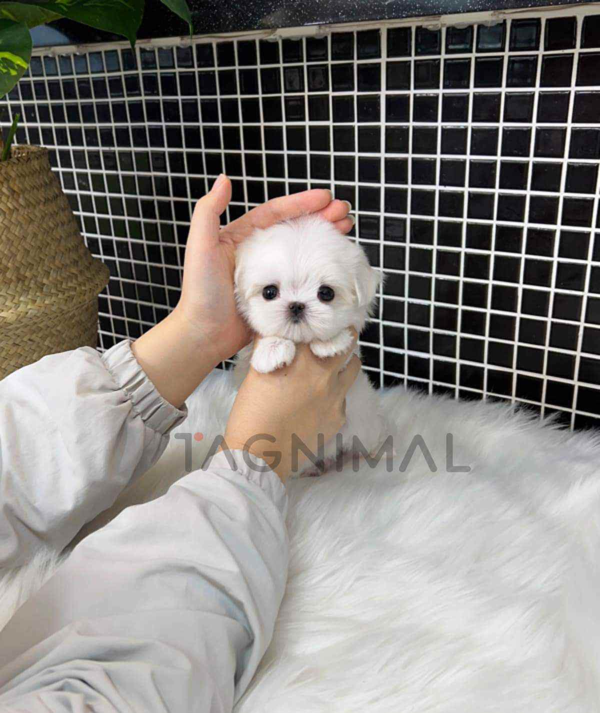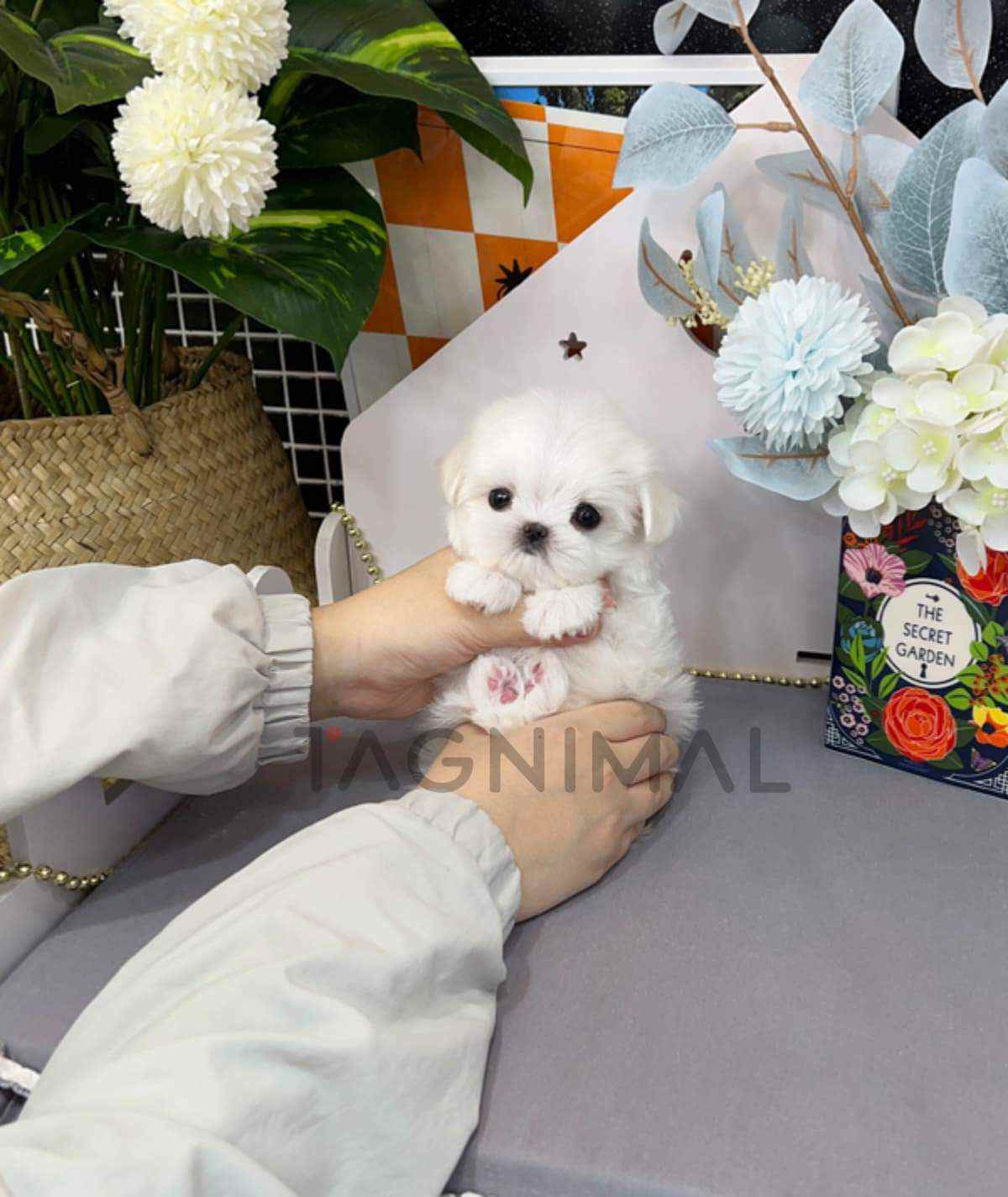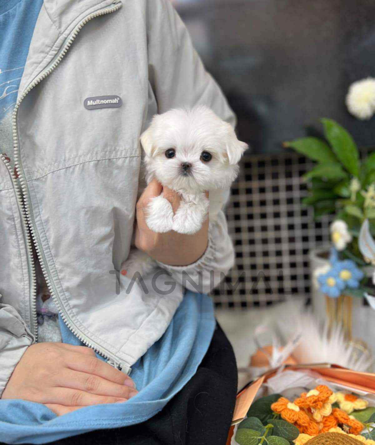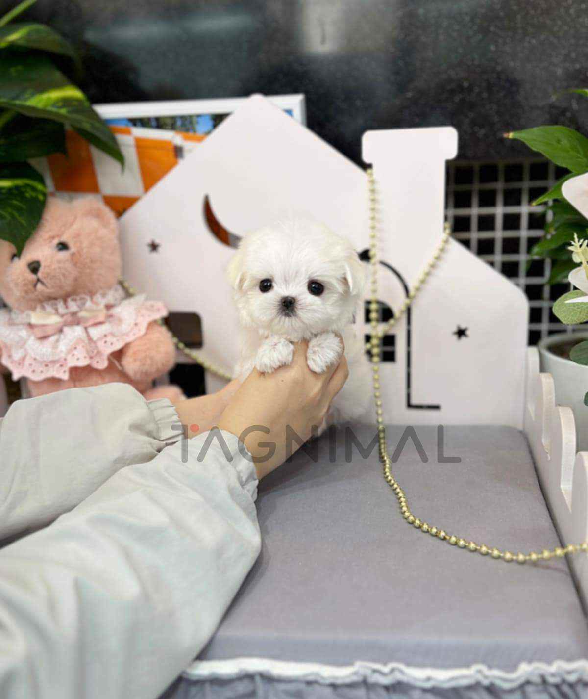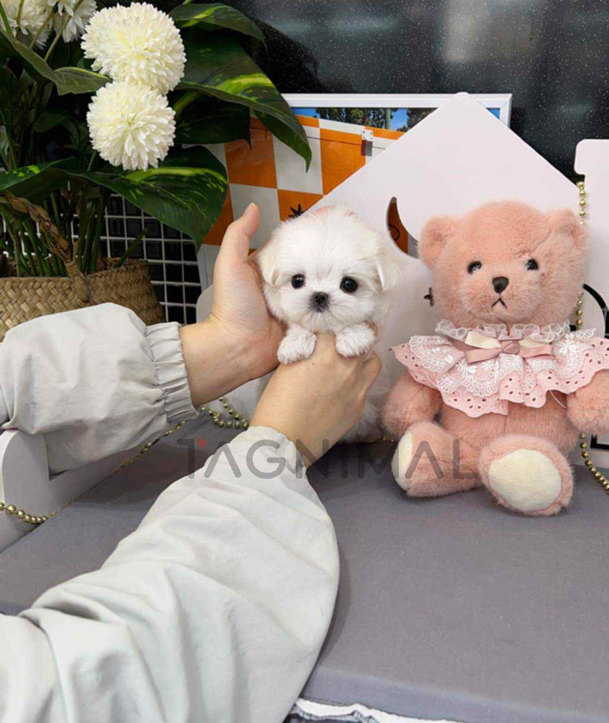 The Korean Maltese baby boy with the smallest body Teacup size, adorable face, and super fluffy white color fur is now ready for pre-order ❤️