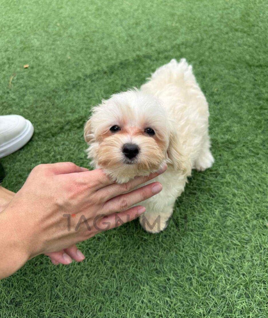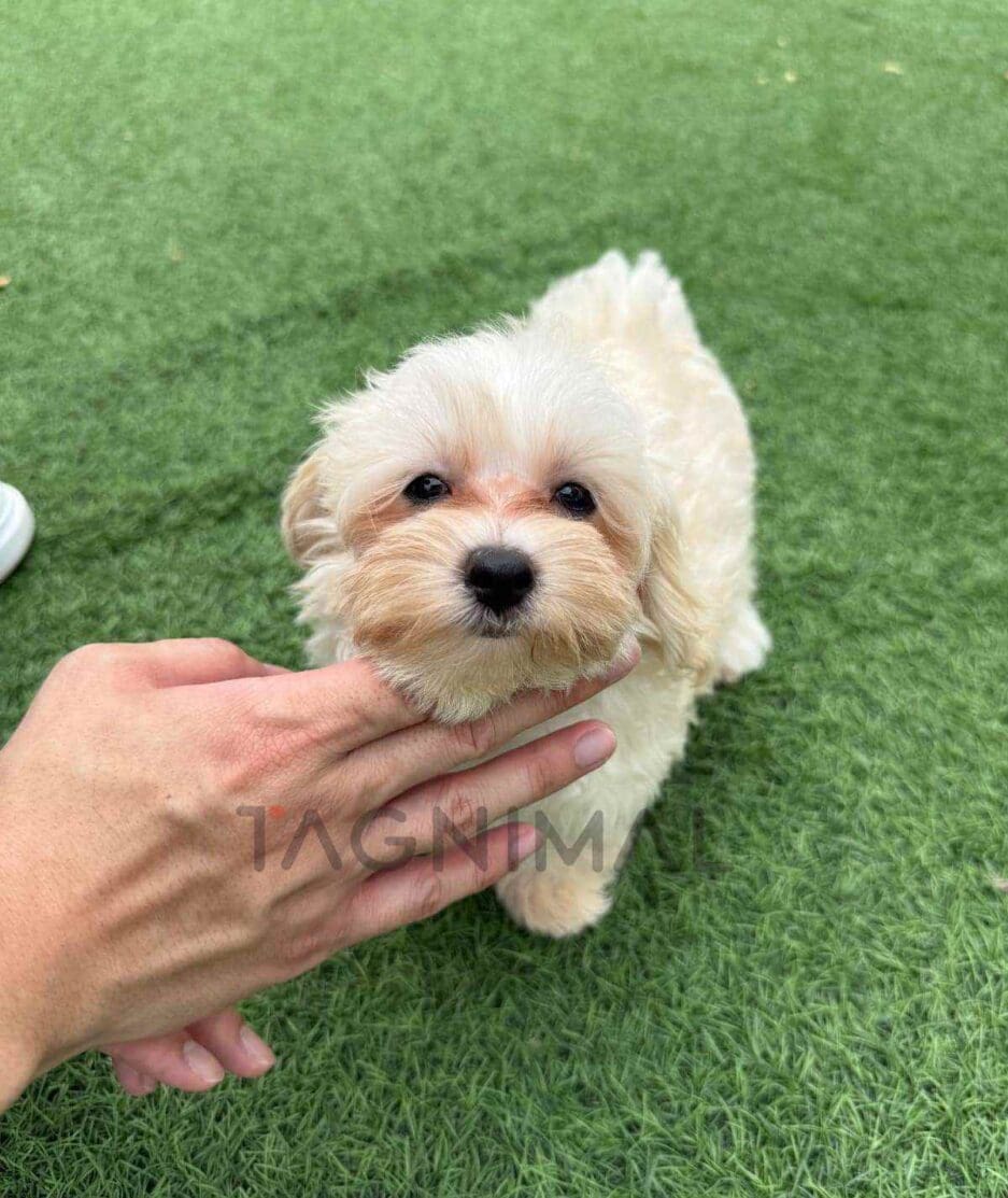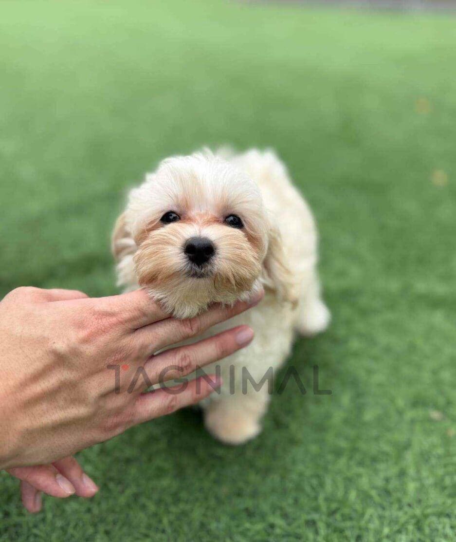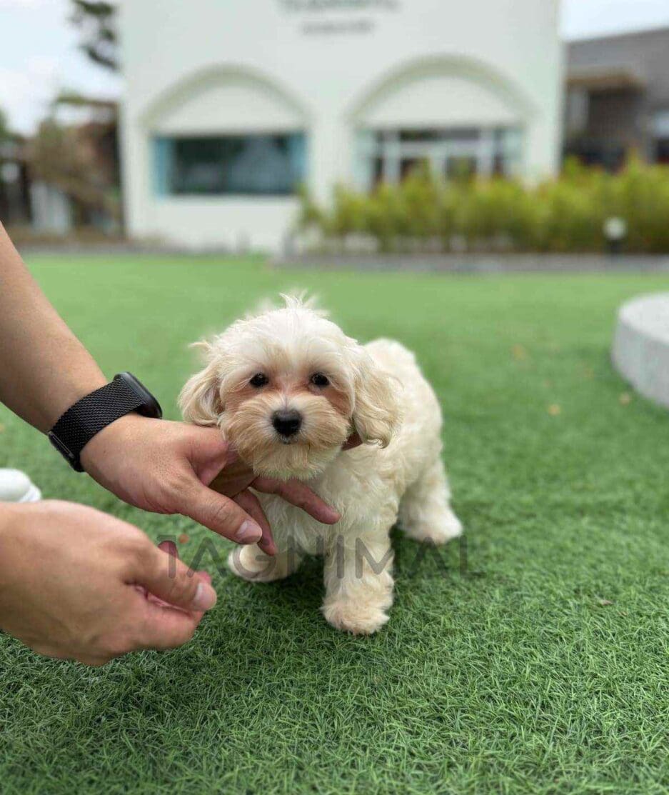 The Maltipoo (Maltese + Poodle) baby boy with stunning cream white fur, Korean bloodline (Dad and Mom imported from Korea), and mini size is now ready for pre-order ❤️