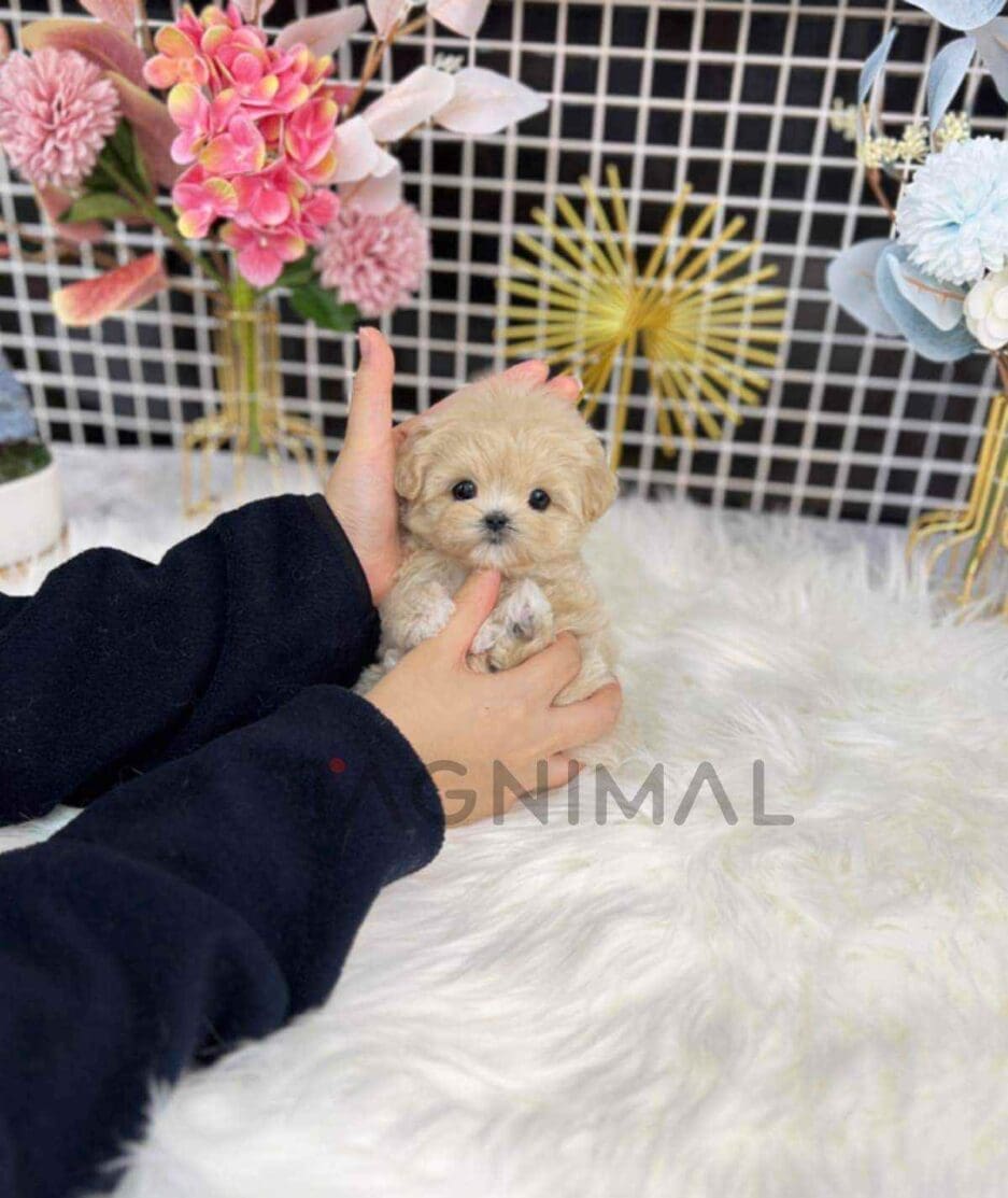The little Korean Maltipoo baby girl with big eyes, super fluffy cream brown fur, and the cute Teacup size is now ready for a new loving home ❤️