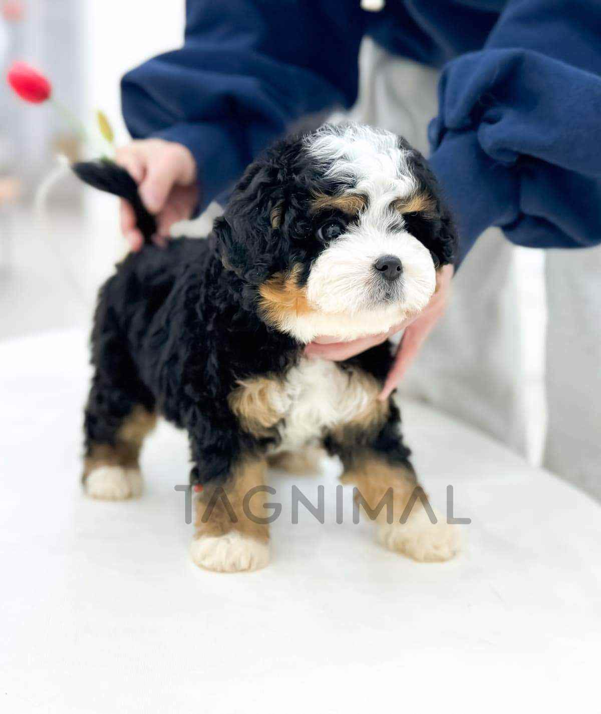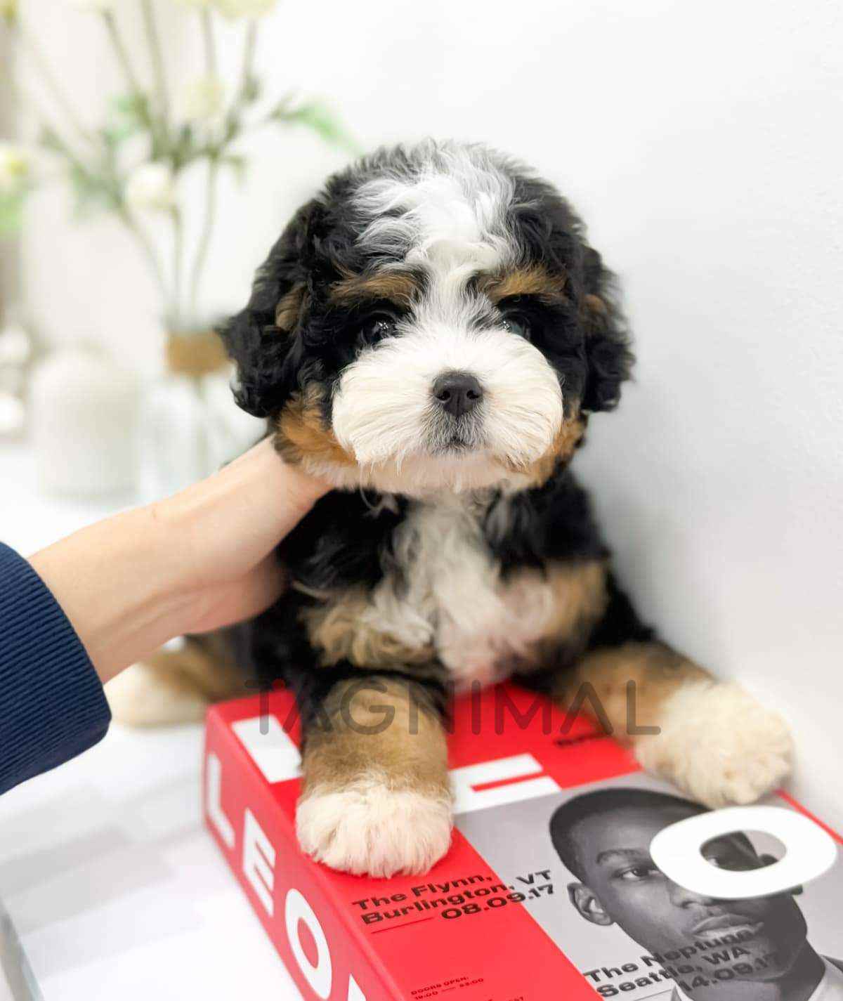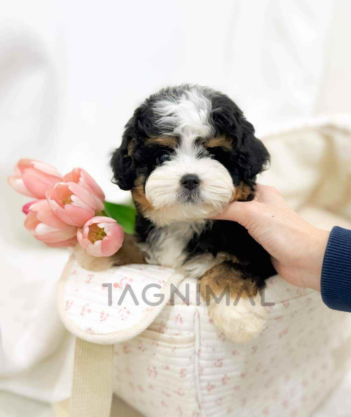 The little Korean Bernedoodle baby girl with the hybrid breed, adorable face, Beautiful curly brown fur, and the perfect size for cuddling is now ready for a new loving home ❤️