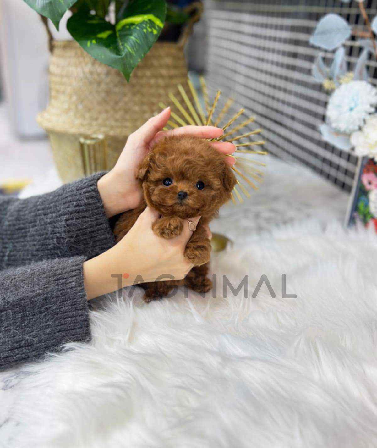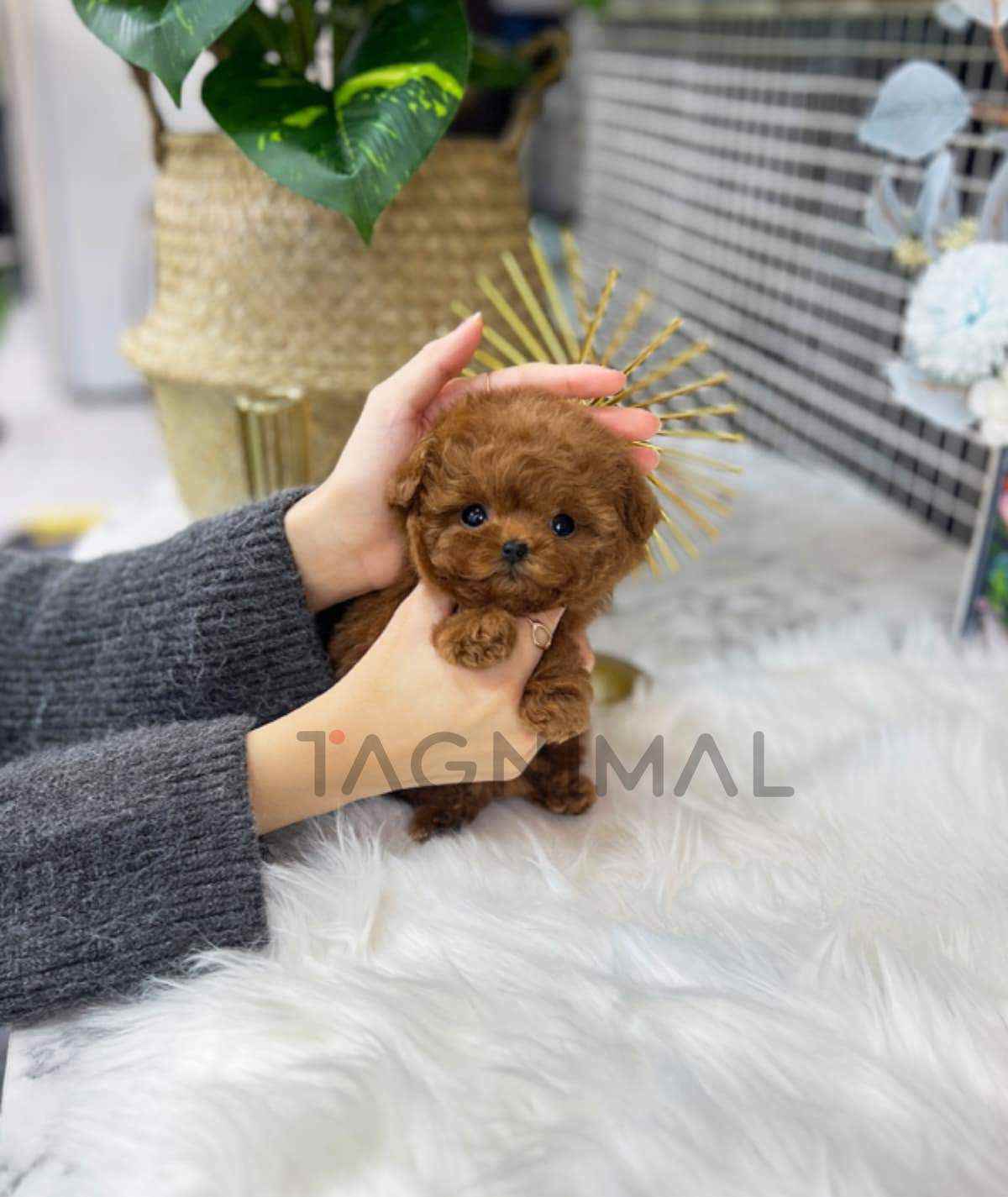 The toy Poodle baby girl with super pretty fluffy red color fur, sweet looks, and super tiny Teacup size is now ready for pre-order ❤️