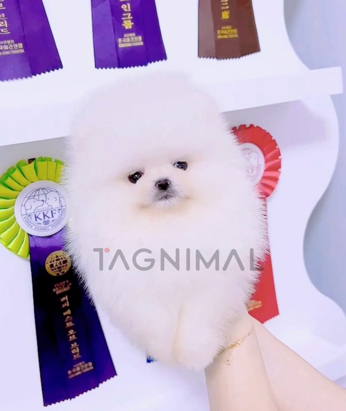 The little Korean pomeranian baby boy with super fluffy white fur and a tiny Teacup size is now ready for a new loving home ❤️