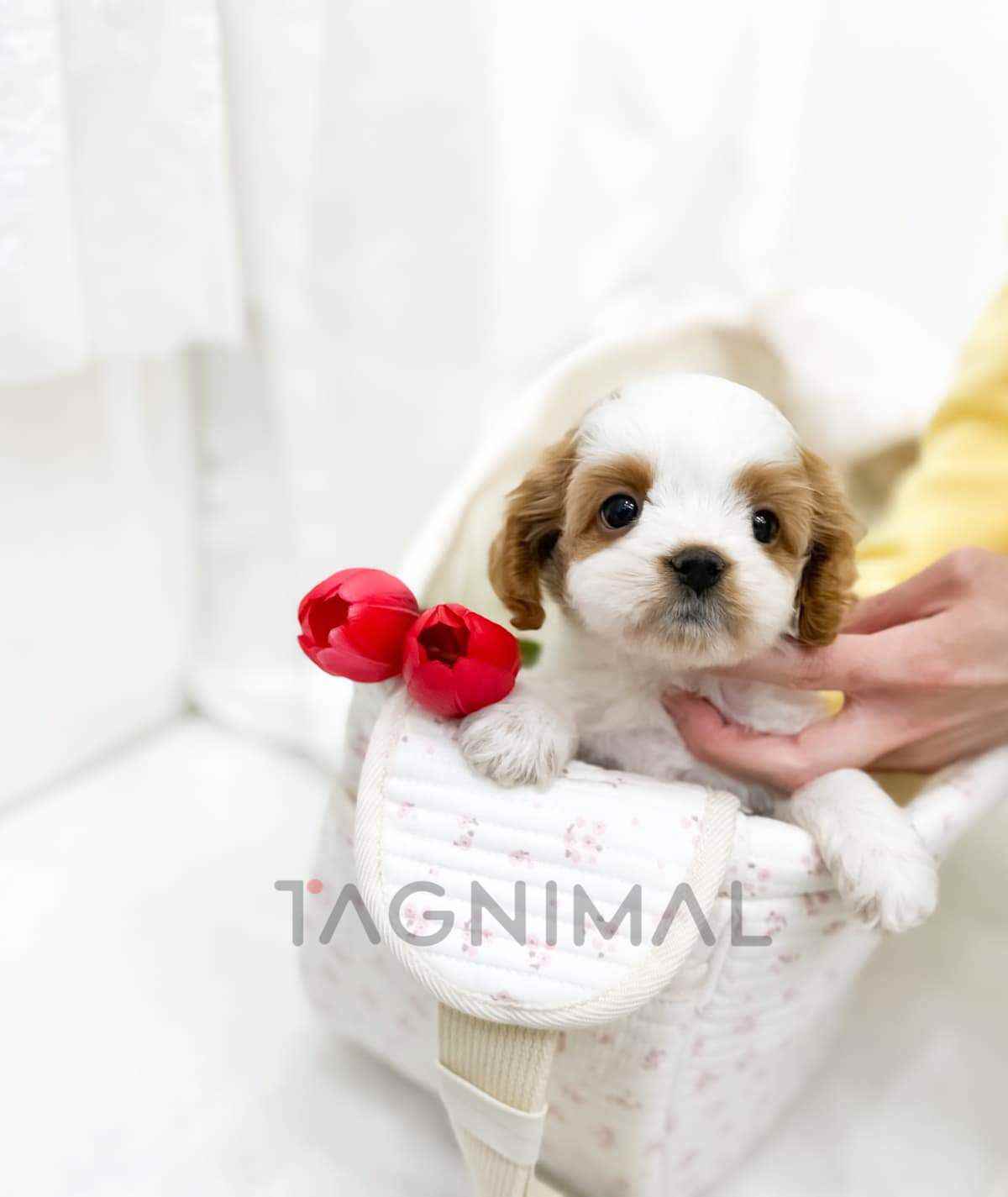 The little Korean Cavapoo baby girl with the hybrid breed (Cavalier King Charles Spaniel + Poodle), adorable face, Beautiful curly white cream fur, and the perfect size for cuddling is now ready for a new loving home ❤️