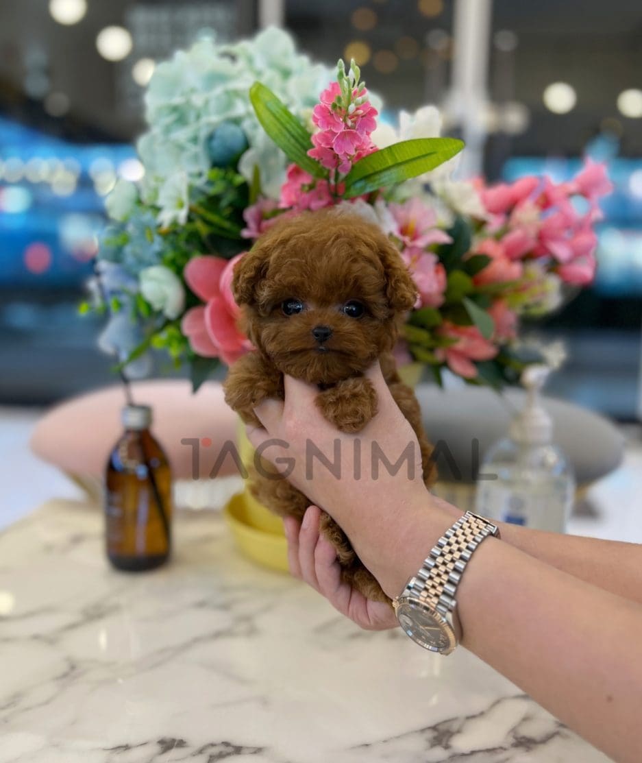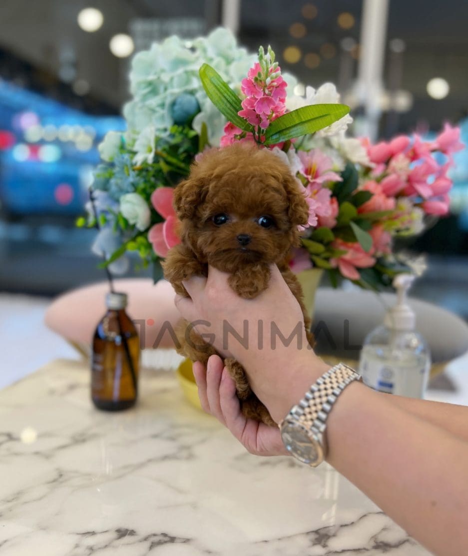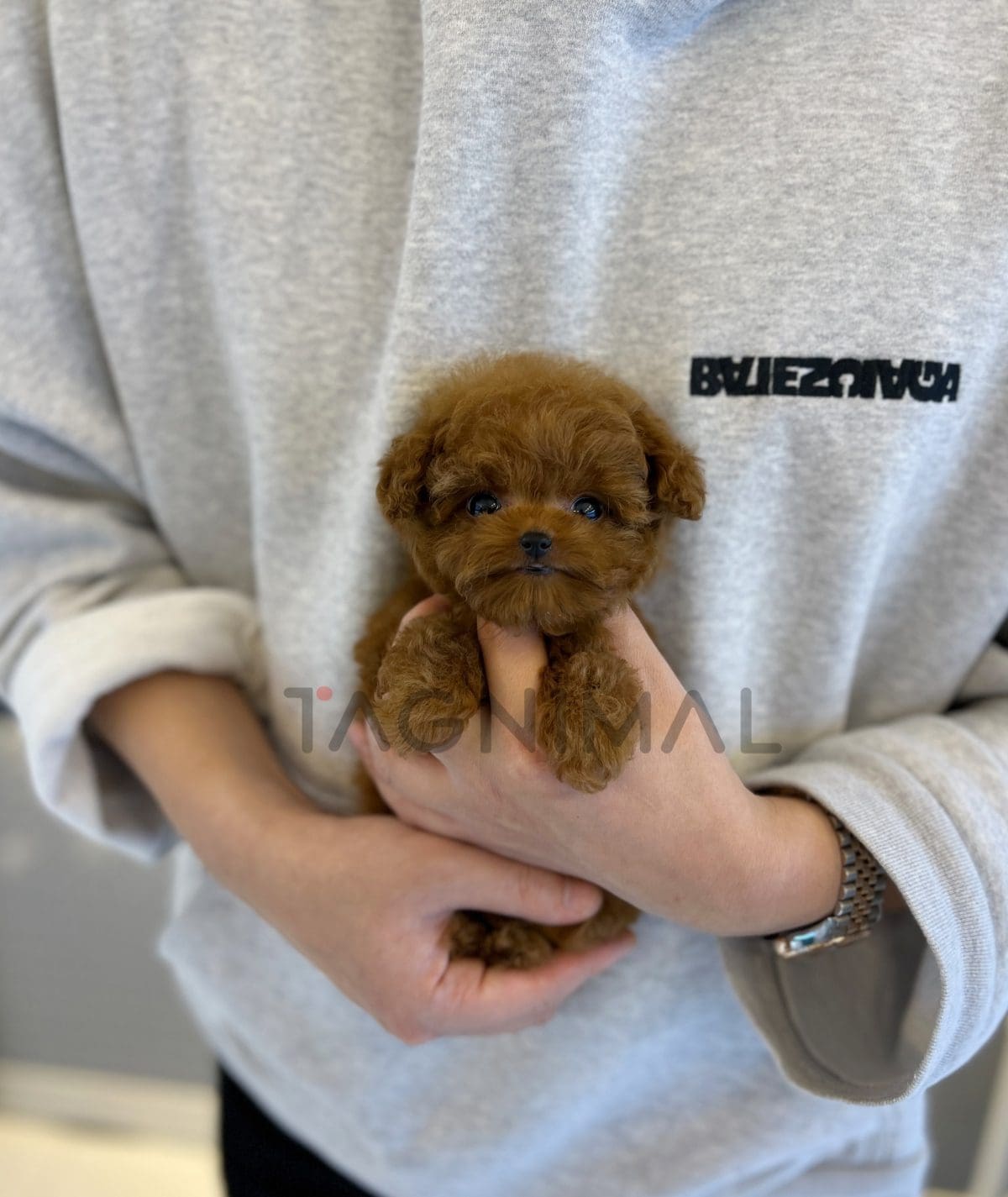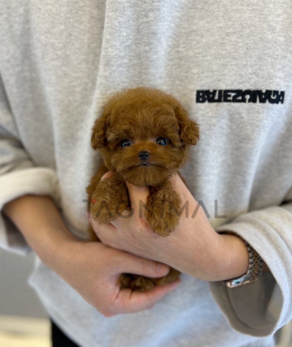 The little Korean poodle baby boy with beautiful curly red copper brrown fur, cute little face, and tiny mini size is now ready for a new loving home ❤️