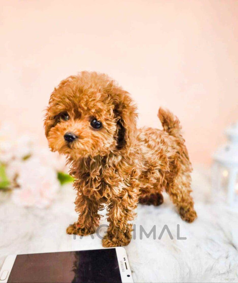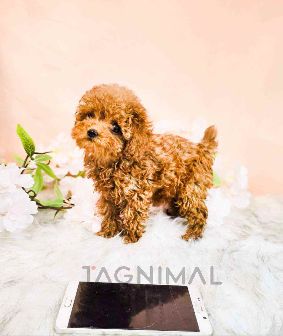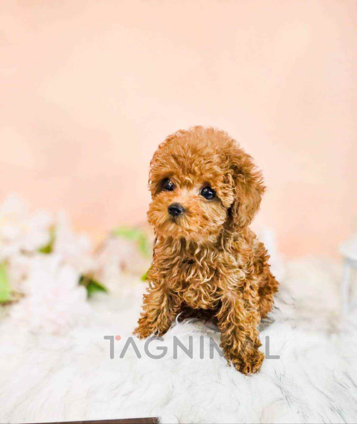 The little Korean poodle baby girl with beautiful curly red fur, a cute little face, and Premium quality, is now ready for a new loving home ❤️