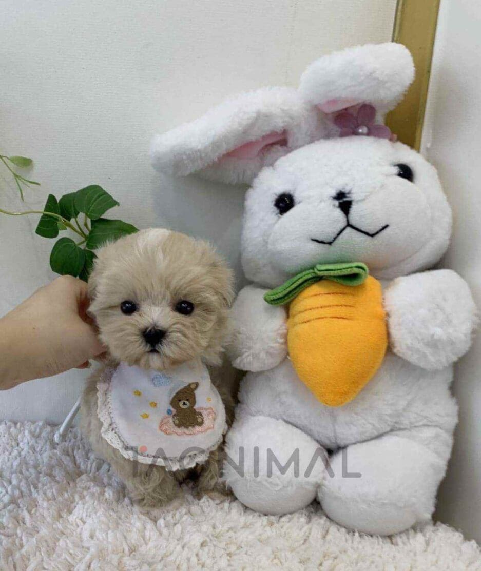 The little Korean Maltipoo baby boy with big eyes, super fluffy cream brown fur, and the cute Mini size is now ready for a new loving home ❤️