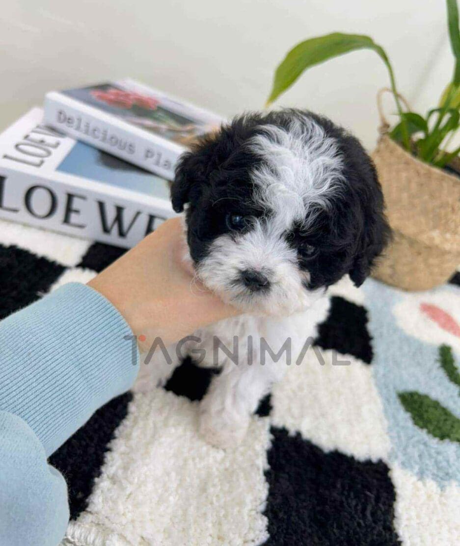 🇰🇷 IMPORT FROM SOUTH KOREA 🇰🇷 The little Korean poodle baby girl with super fancy white&black fur, very sweet looks, and cute toy size is now ready for a new loving home ❤️