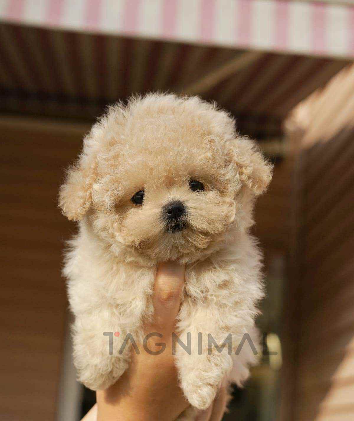 The toy Poodle baby girl with super pretty fluffy cream fur, an adorable face, and a super tiny Teacup size is now ready for pre-order ❤️
