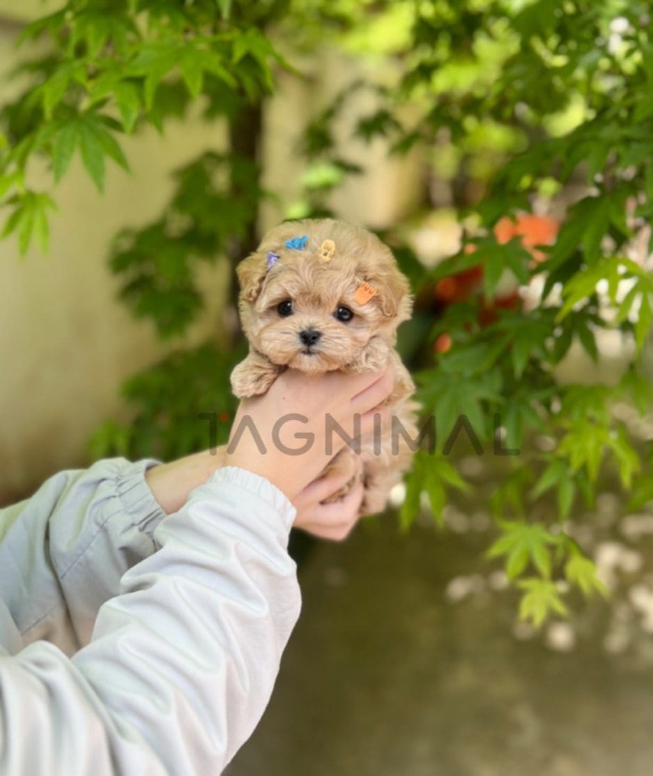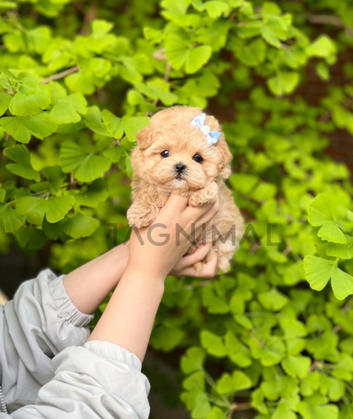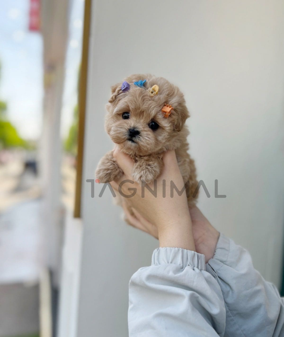 The little Korean Maltipoo baby girl with sweet looks, super fluffy cream brown fur, and a tiny mini size is now ready for a new loving home ❤️