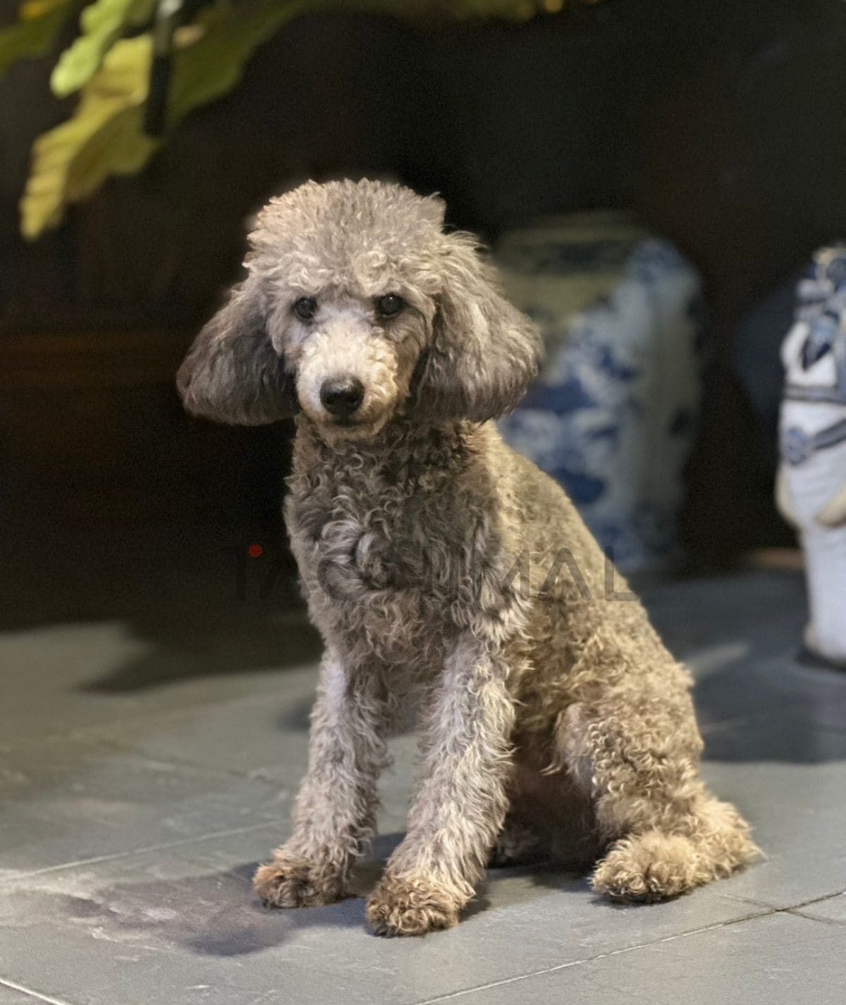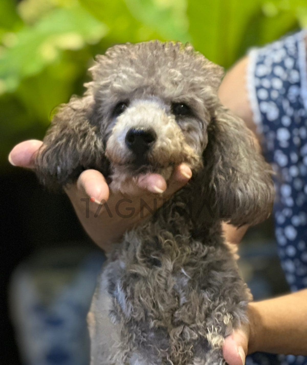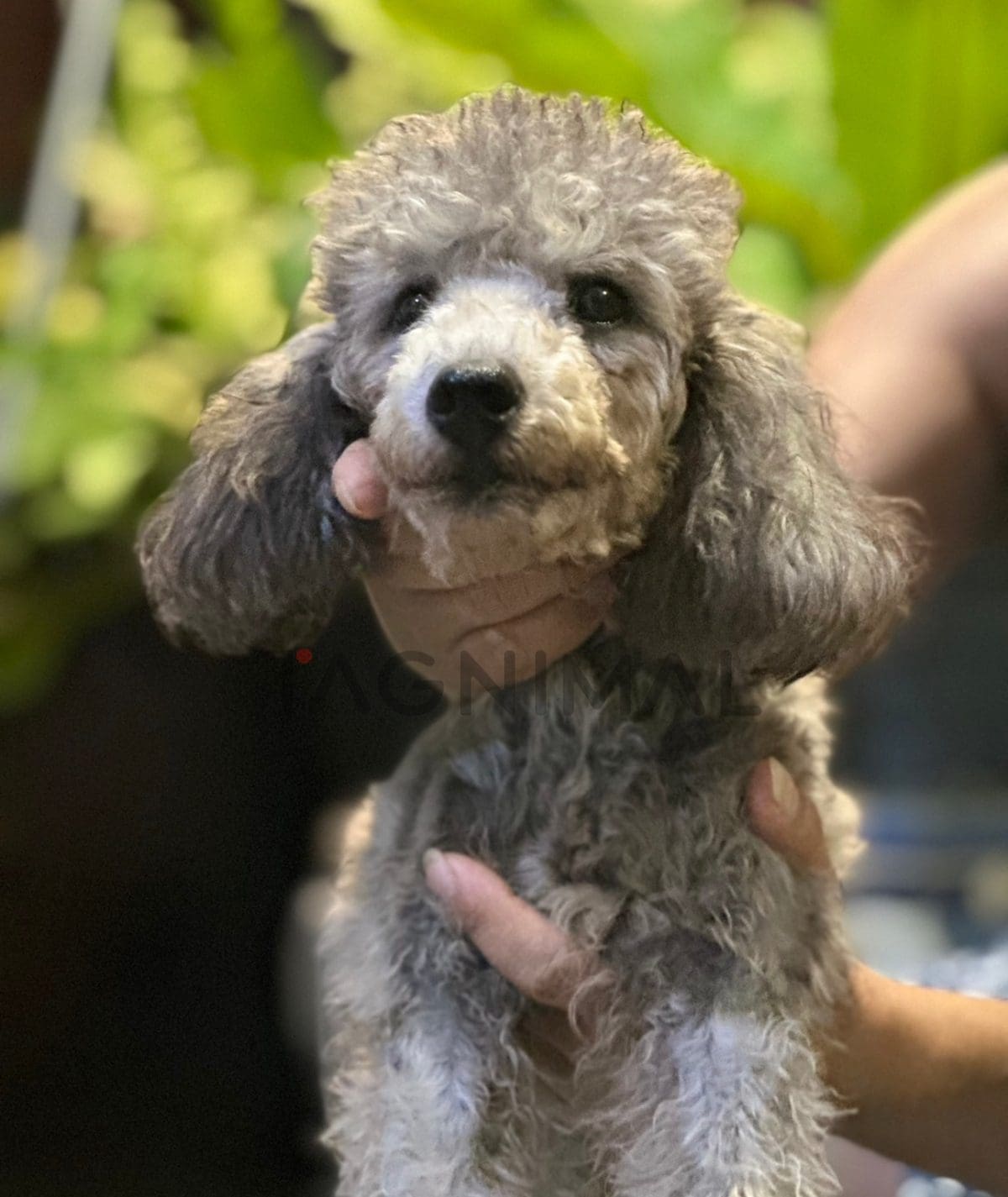 The little Korean poodle baby boy with fancy sliver black fur, teddy bear ears, very sweet looks, and a cute toy size is now ready for a new loving home ❤️