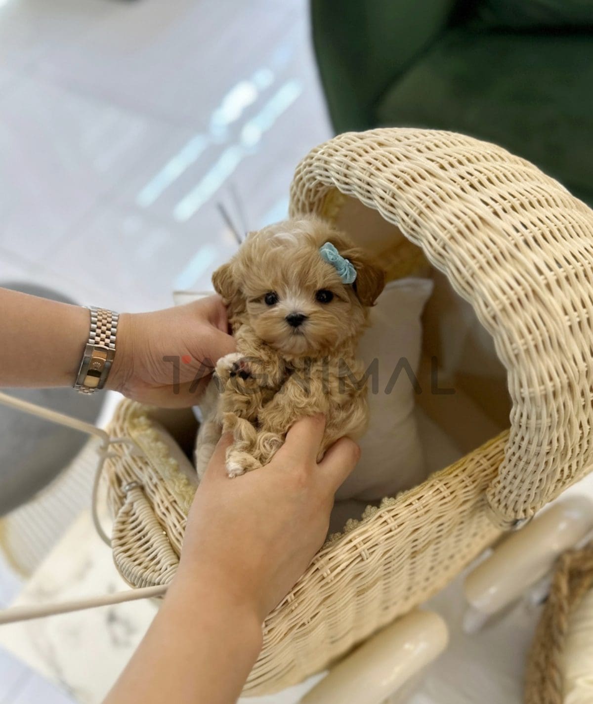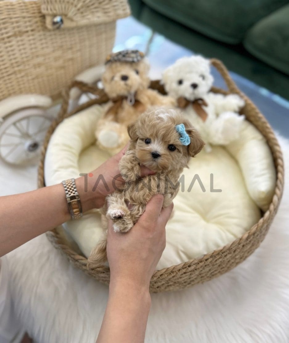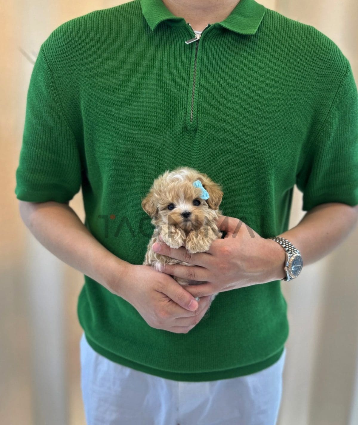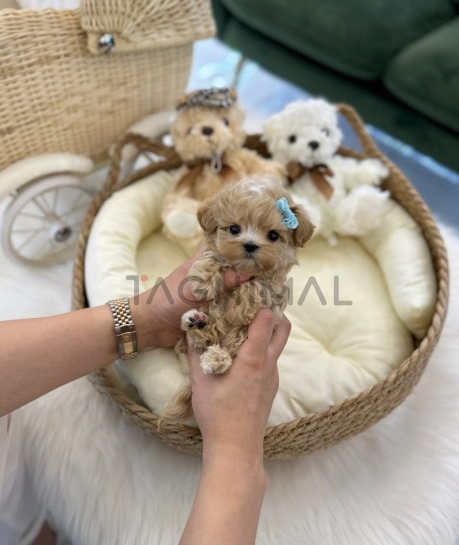 The little Korean Maltipoo baby boy with super fluffy Parti color fur and unique vivid markings and ready for a new loving home ❤️