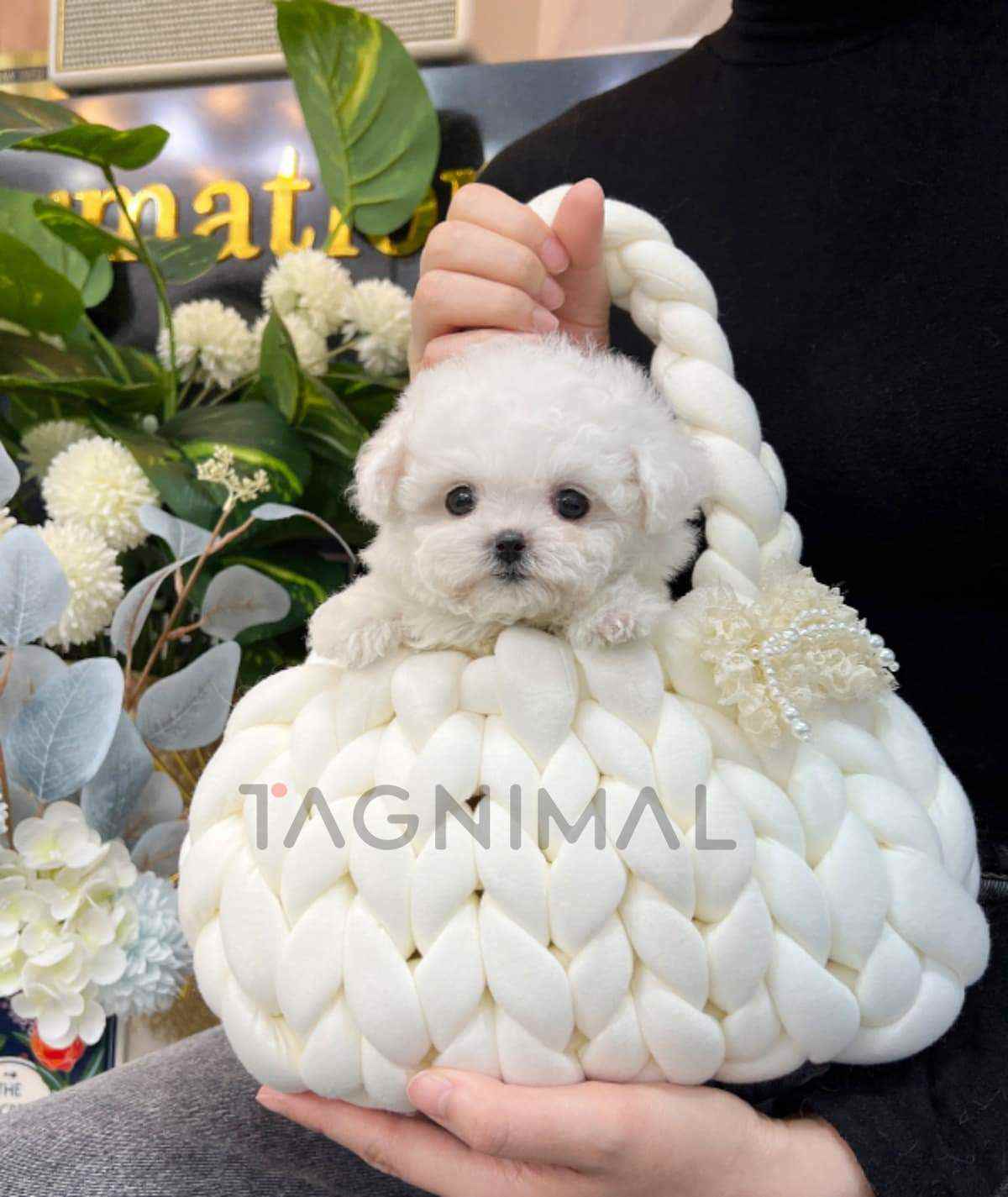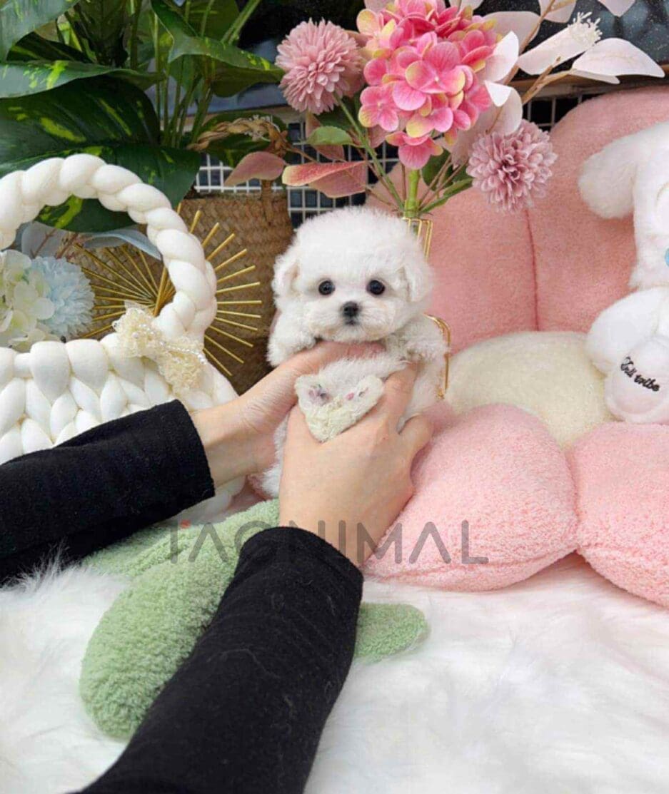 The little Korean Bichon Frise baby boy with sweet looks, super fluffy white fur, and a tiny teacup size is now ready for a new loving home ❤️