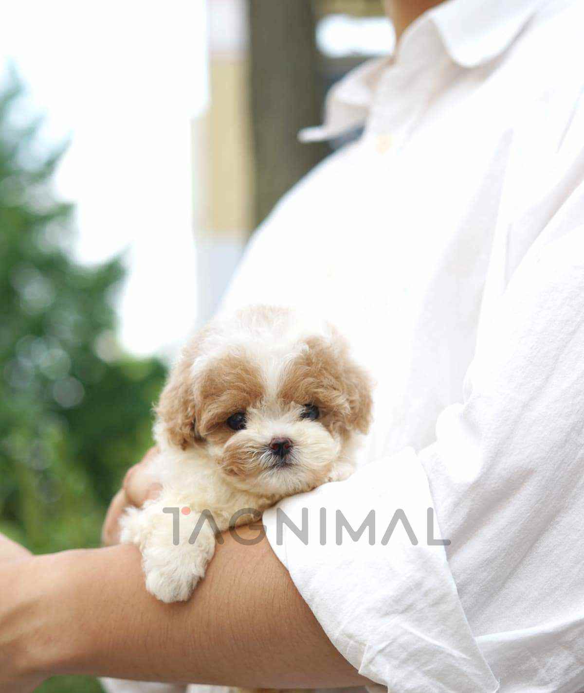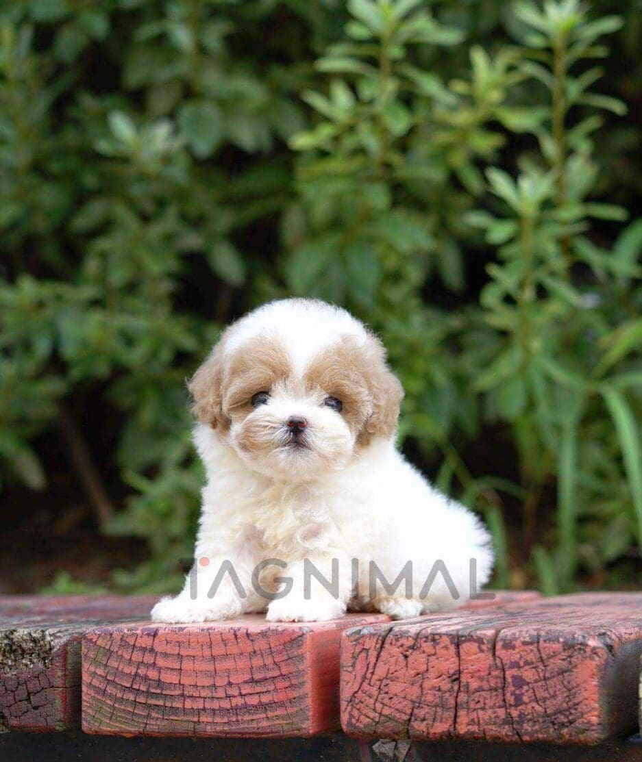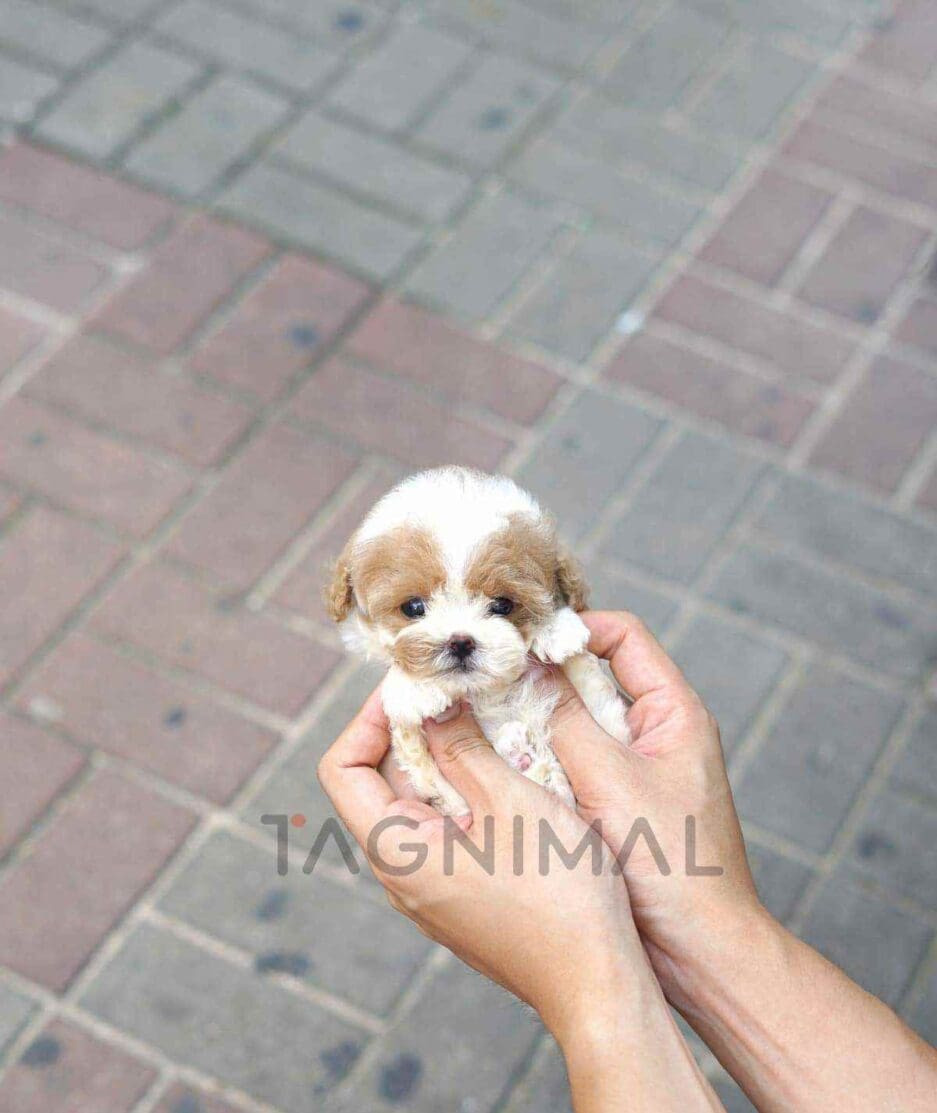 The little Korean Poodle baby girl with super fluffy Parti color fur and unique vivid markings around his paws and ready for a new loving home ❤️