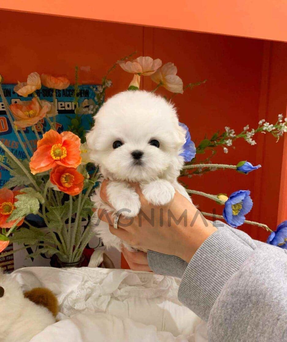 The Korean Maltese baby boy with the smallest body Teacup size, adorable face, and super fluffy white color fur is now ready for pre-order ❤️