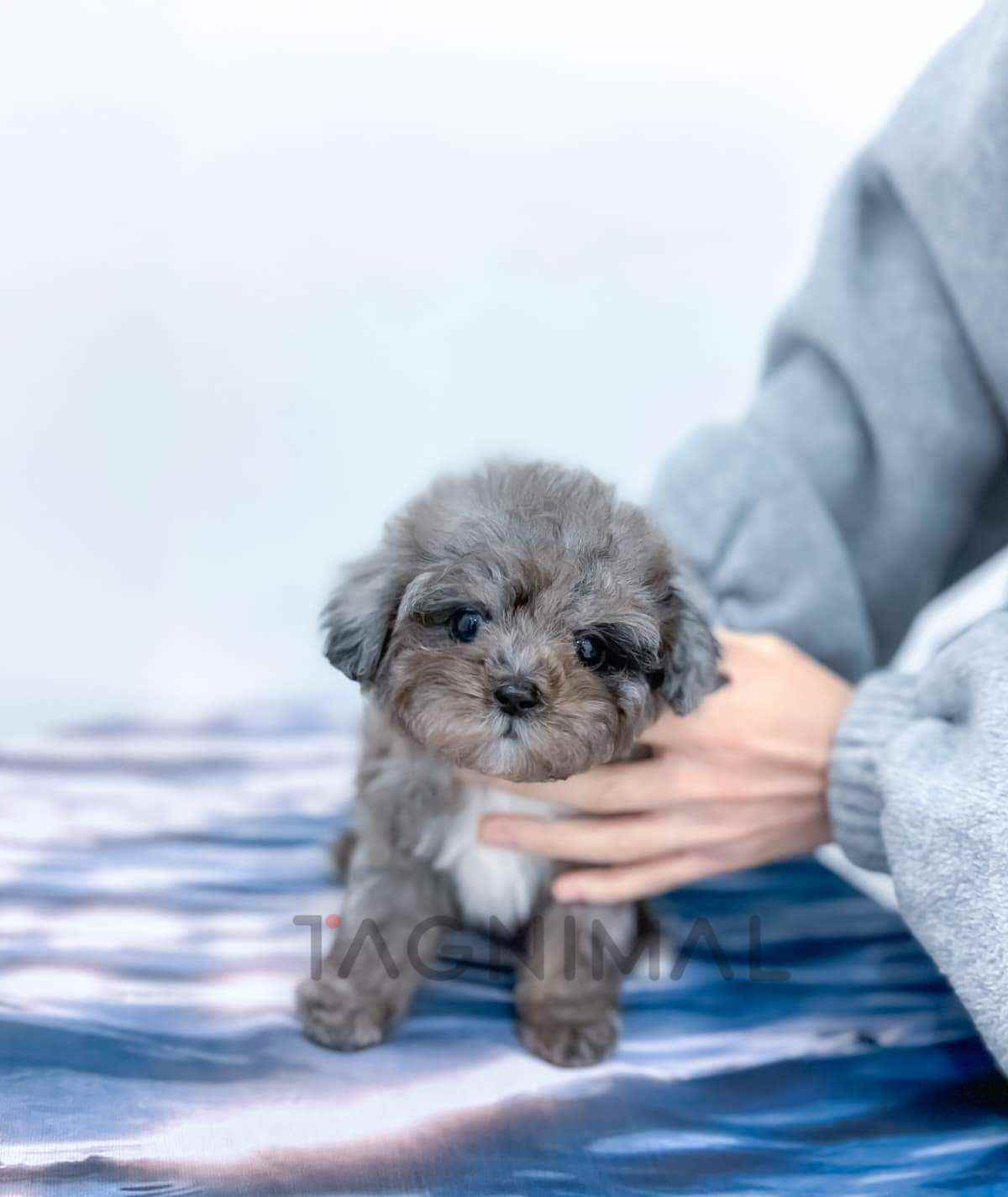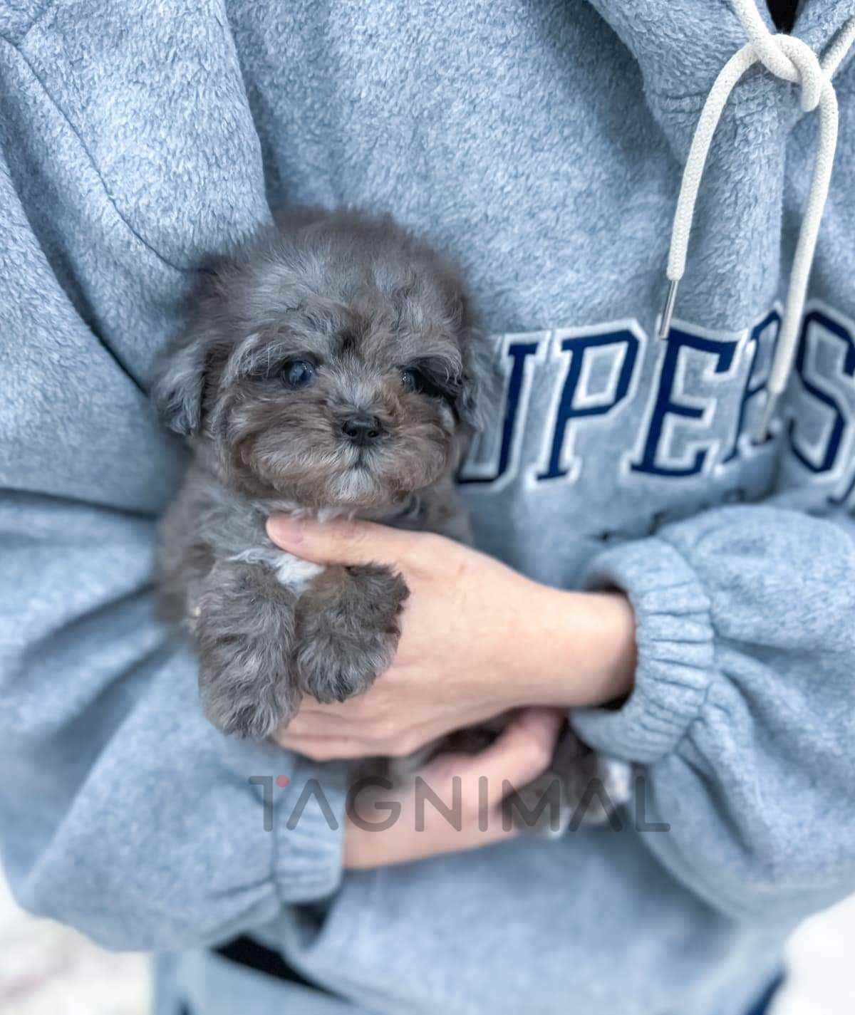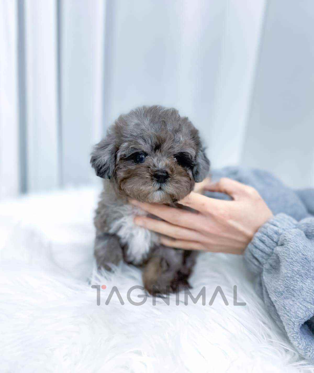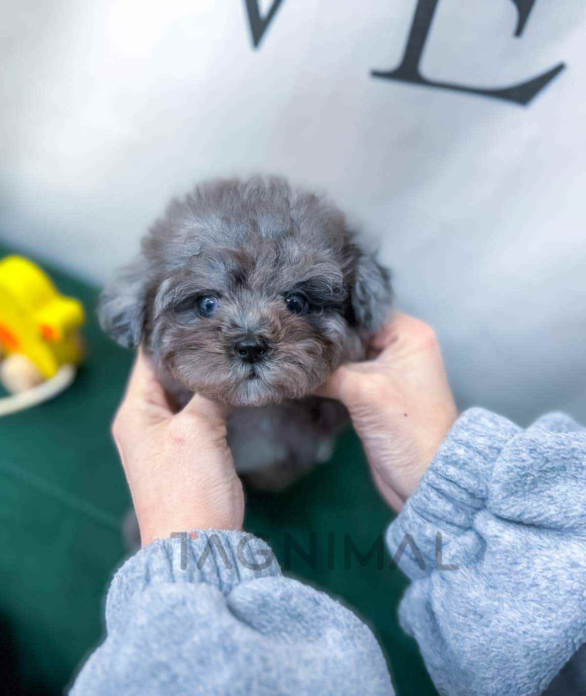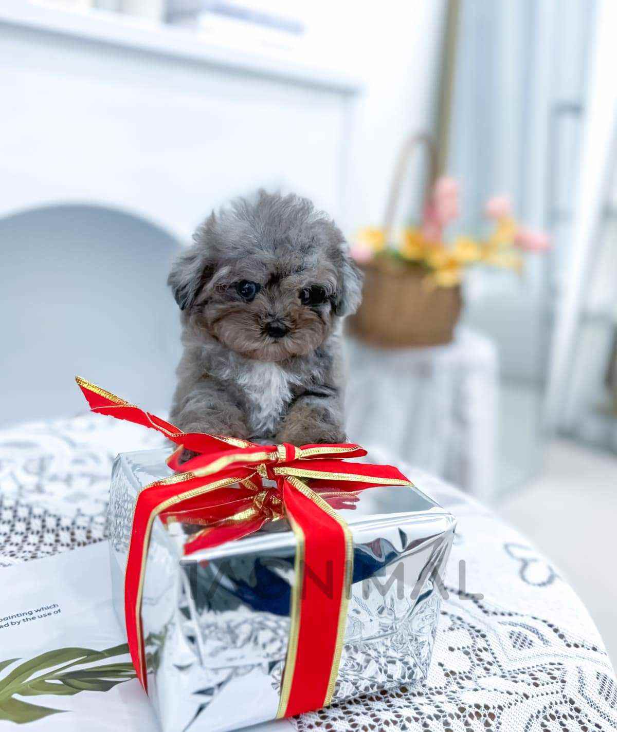 The little Korean poodle baby boy with fancy Blue Merle fur, teddy bear ears, very sweet looks, and the cute mini size is now ready for a new loving home ❤️