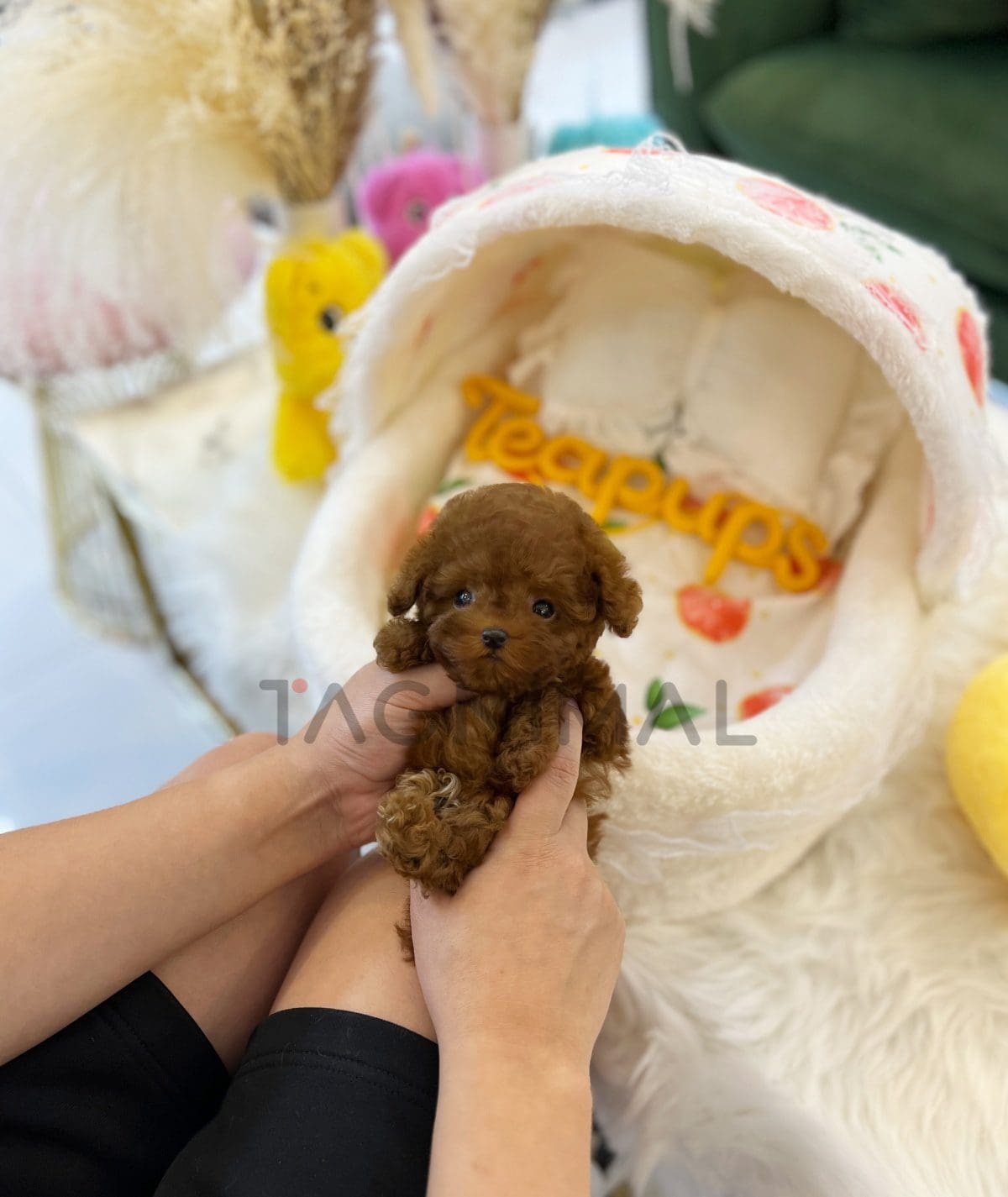 The little Korean poodle baby girl with beautiful curly red fur, a cute little face, Premium quality, and mini size is now ready for a new loving home ❤️
