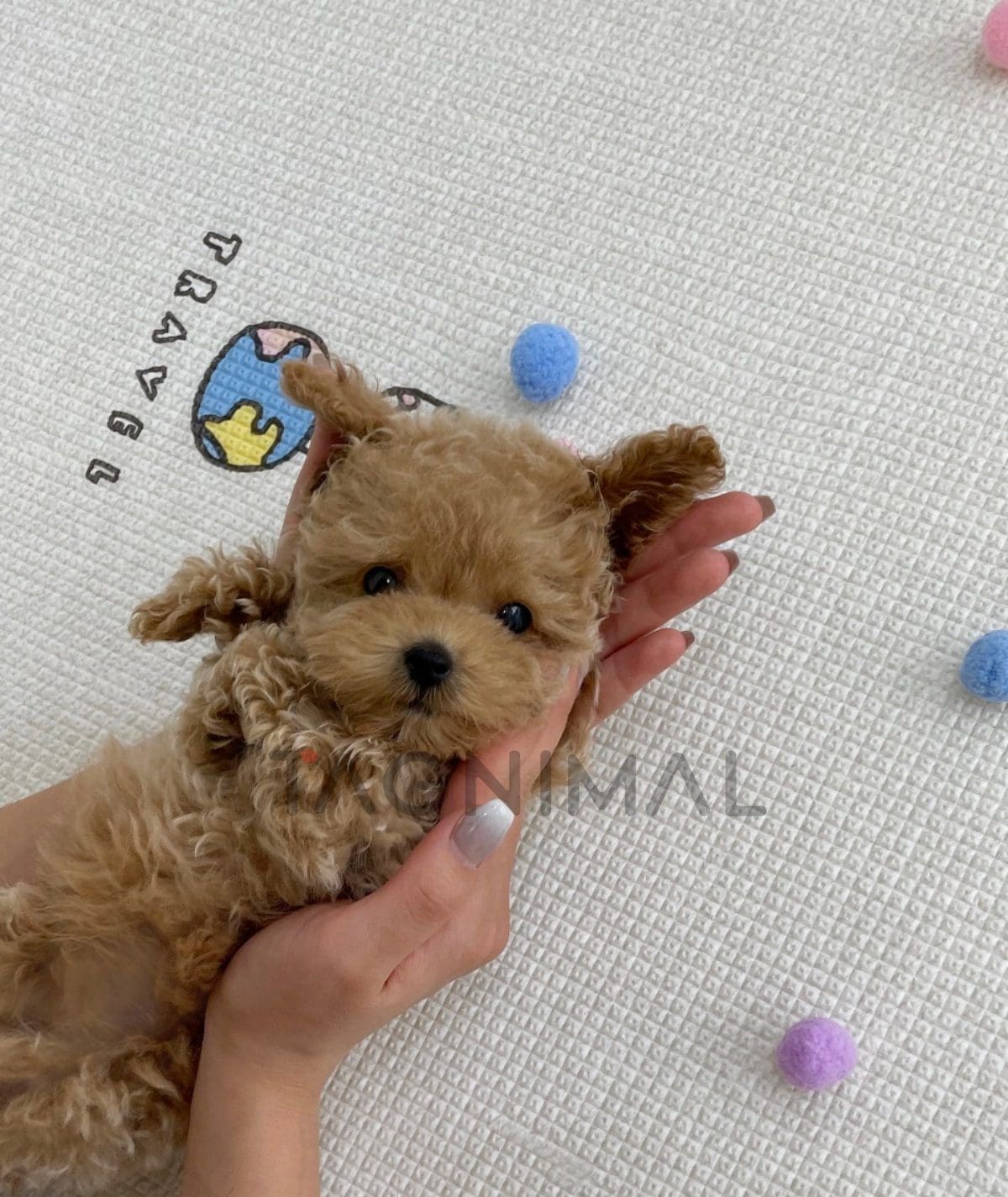 🇰🇷 IMPORT FROM SOUTH KOREA 🇰🇷 The little Korean Maltipoo baby boy with beautiful curly hazelnut brown fur and super cute face he’s now ready for a new loving home ❤️