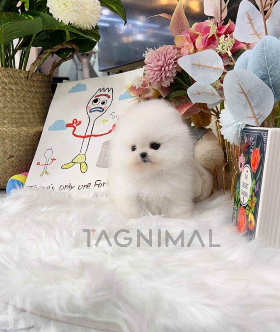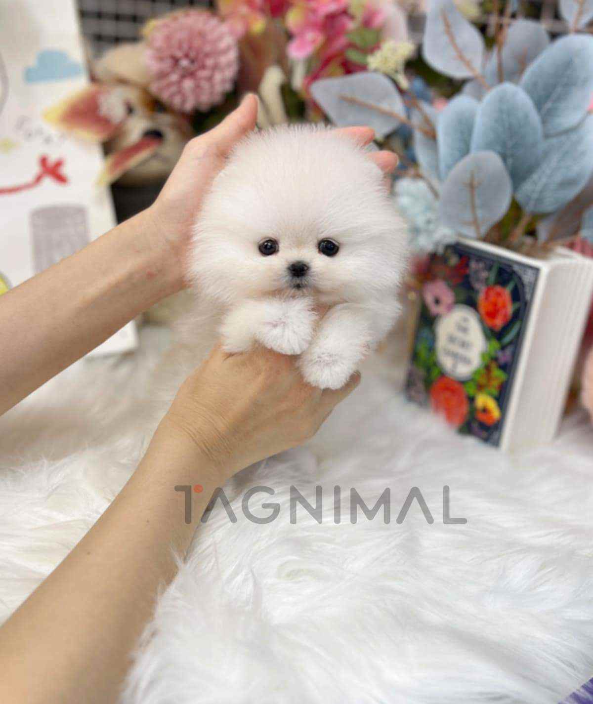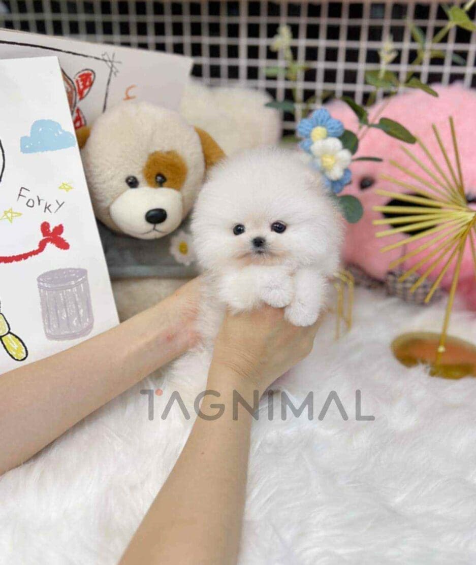 The little Korean pomeranian baby girl with super fluffy white fur and a tiny Teacup size is now ready for a new loving home ❤️