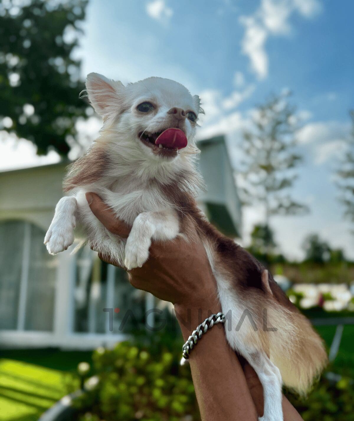 The little Thailand Chihuahua baby boy with super pretty White fur, brown ears, Siberian Husky face and cute teacup size is now ready for a new loving home ❤️