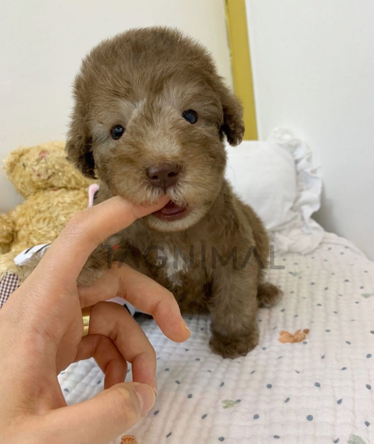 The little Korean Bedlington Terrier baby boy with dark chocolate fur, Sweet face is now ready for a new loving home ❤️